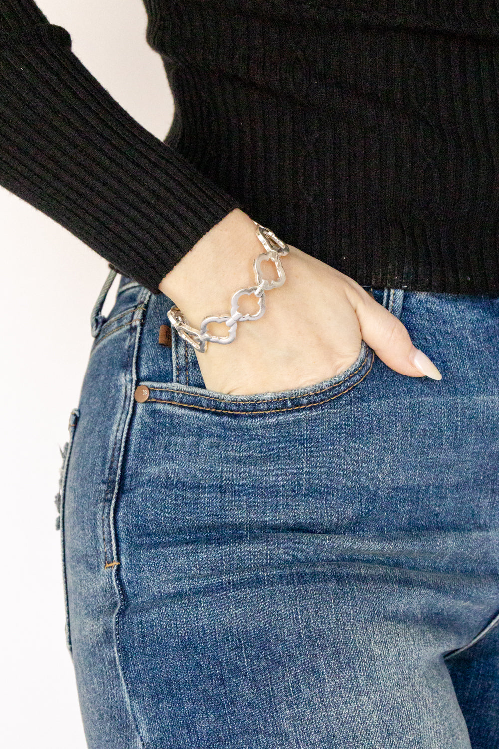 This bracelet is an effortless blend of style and charm. Perfect for stacking with other bracelets or as a stand-alone piece, the Endless Clover Link Stretch Bracelet brings a subtle elegance to both casual and dressy outfits.