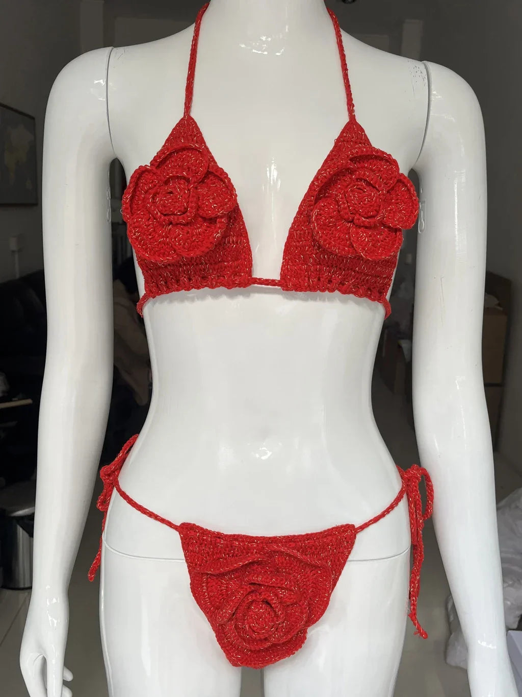 Experience ultimate comfort and style with our Come To My Lap Crochet Bikini. Made with soft cotton material, this beach style bikini features a low waist and wire-free support for a flattering fit. Feel confident and free, whether lounging by the pool or playing in the waves.