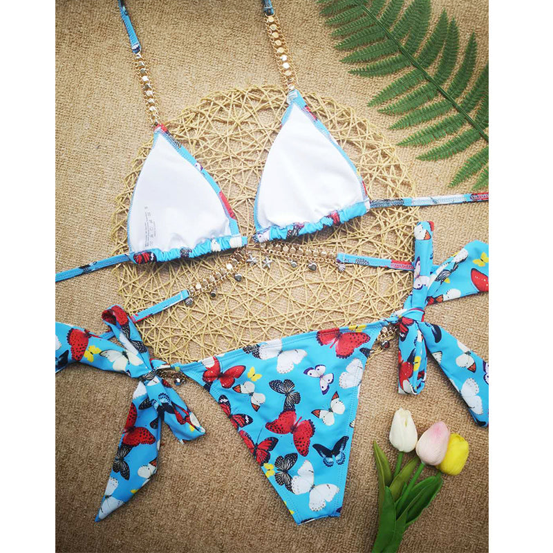 The perfect bikini for your next beach trip is here! The 2-piece bikini comes in solid, animal patterned, and tie-die variants. The metal charms decoration make it a unique bikini set that is sure to turn heads at the beach.