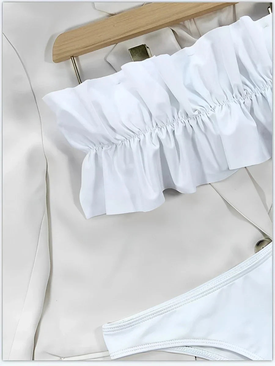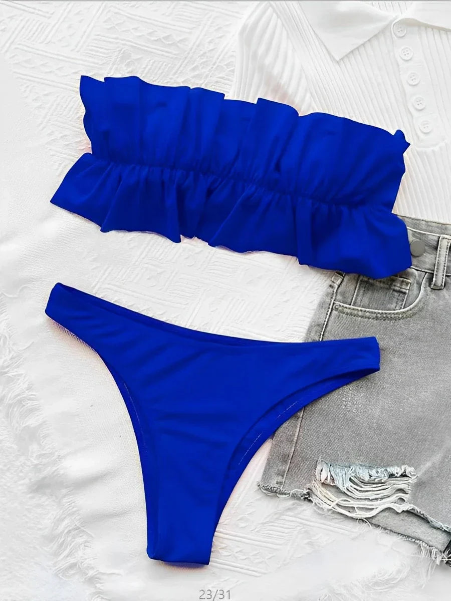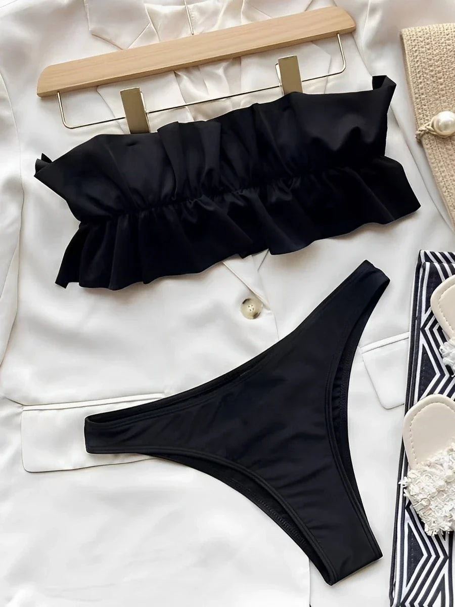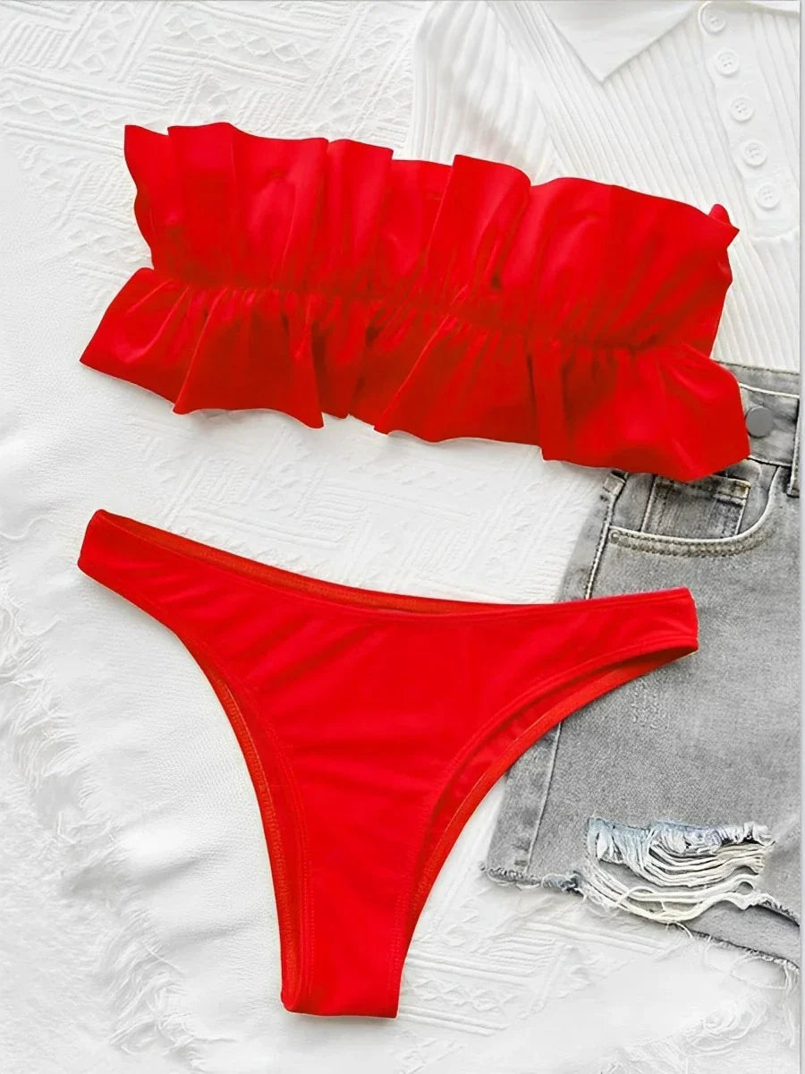 Unleash your beach babe vibes with our Pop The Top Bandeau Bikini! Made with a comfortable blend of spandex and polyester, it offers a wire-free support and features a solid pattern. Perfect for a beach style that's both trendy and comfortable. Get ready to turn heads and catch some waves!