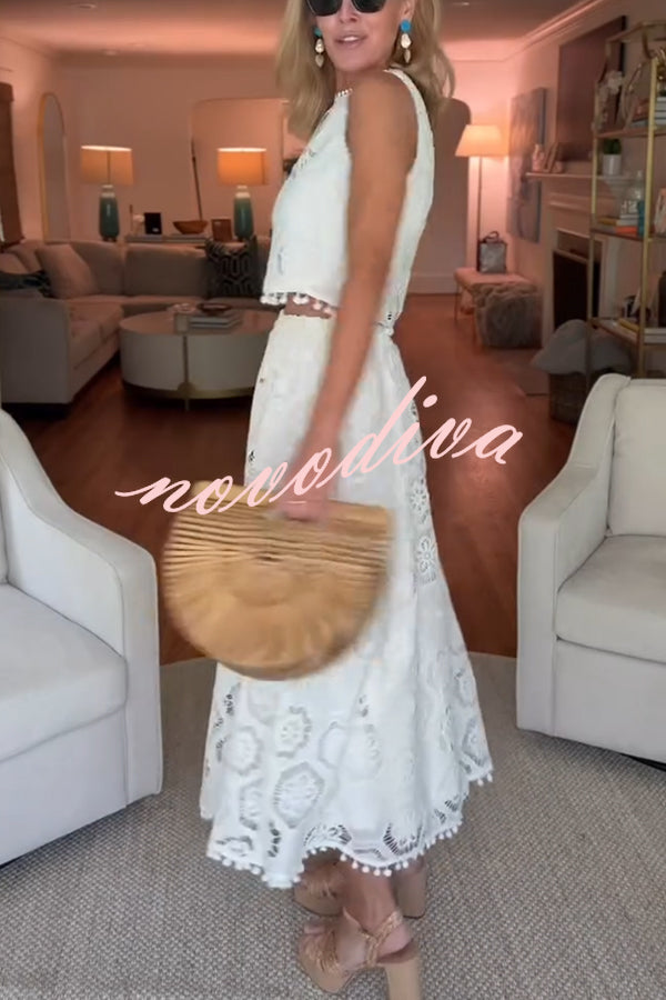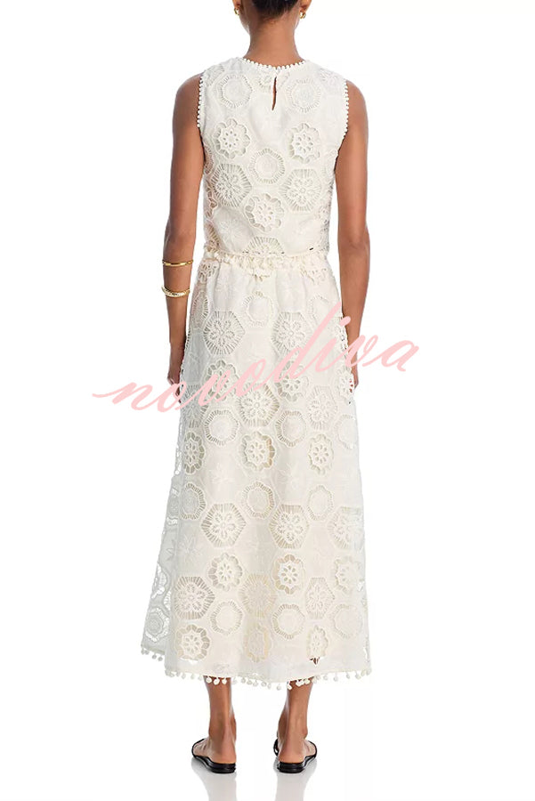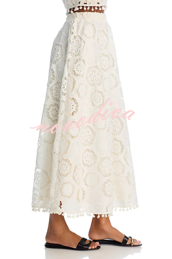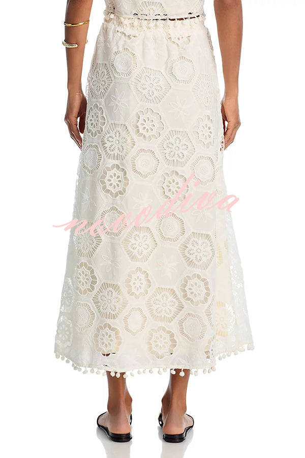 Capri Bloom Skirt – Embroidered Lace Tassel Midi