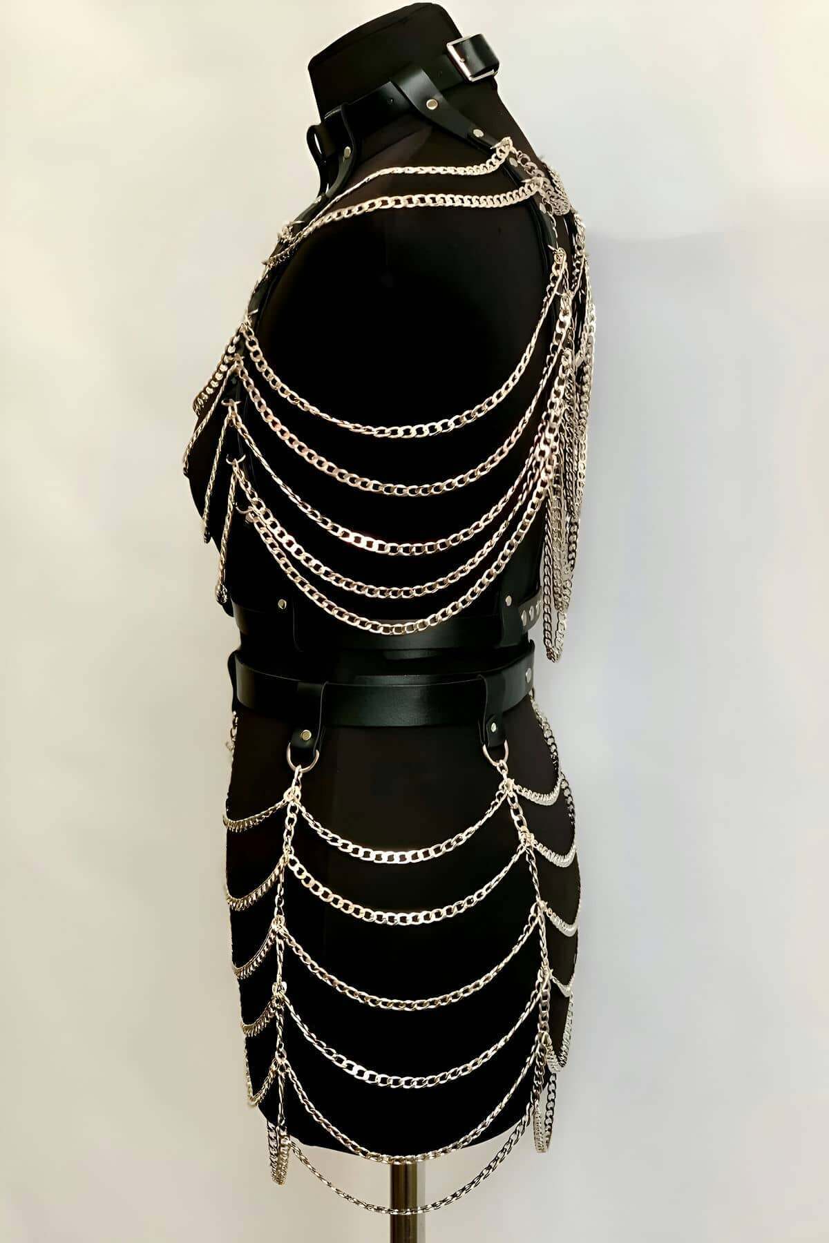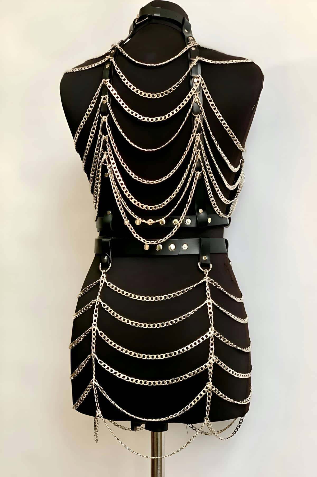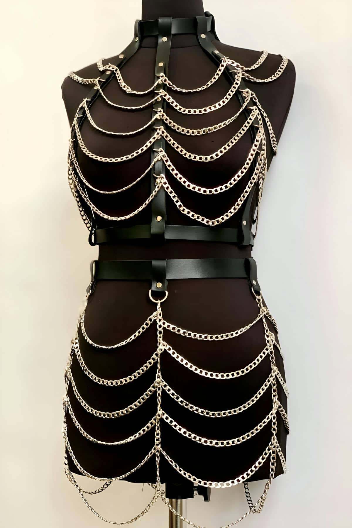 Chain Crop and Skirt Harness Bottom Top Set, Festival Stage Outfits