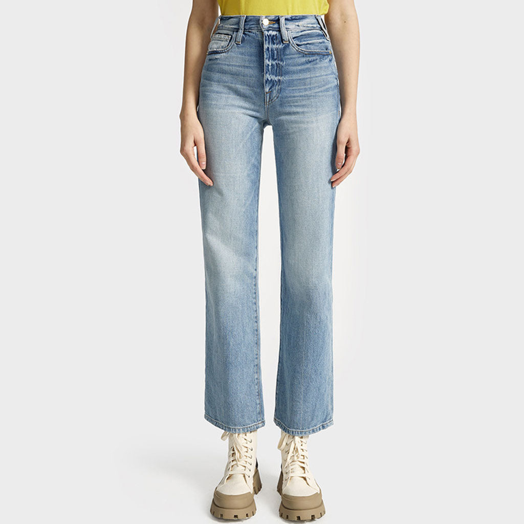 Classic High Rise Fade Ankle Length Straight Leg Jeans - Blue