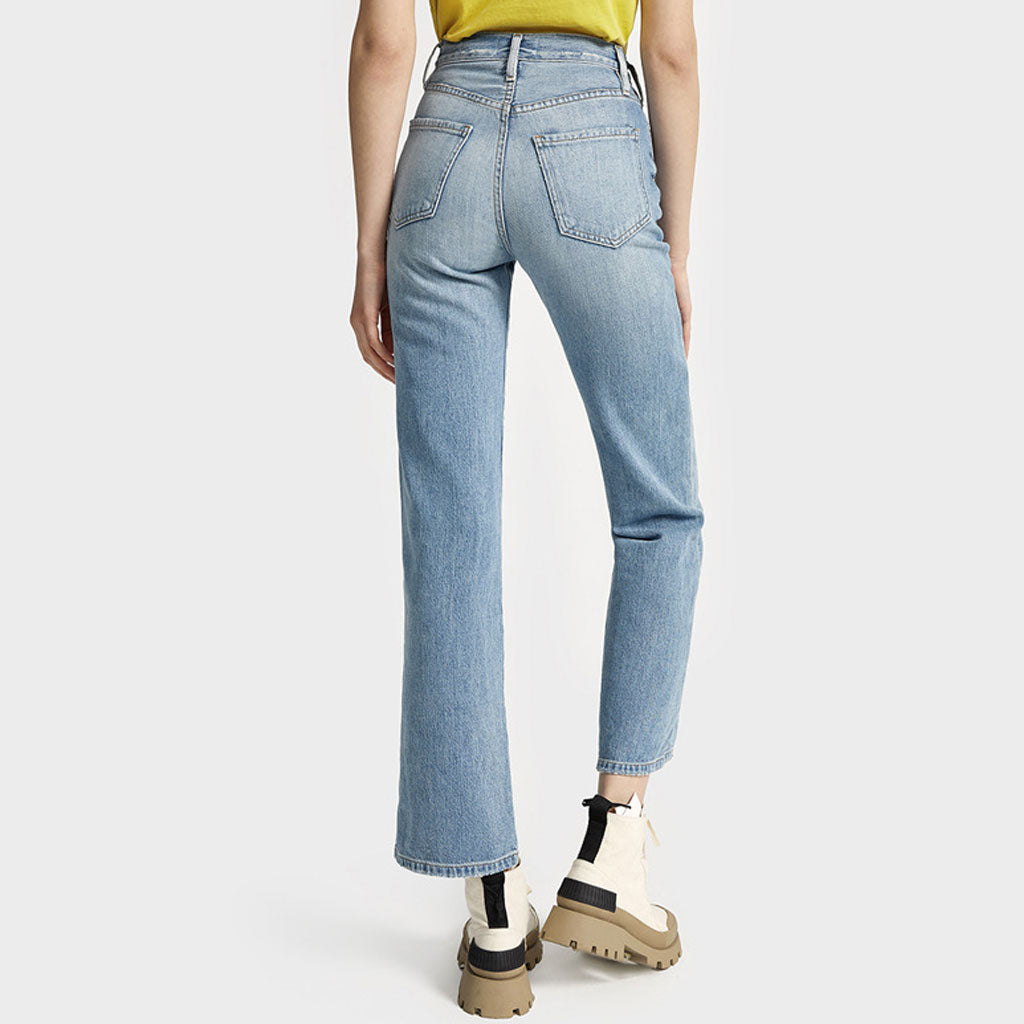 If you must do the jeans thing. this closet classic is a must! The timeless pair sports a straight leg silhouette in a light blue wash that'll shape to your flawless figure. We love the soft fading and whiskering that lighten the wash giving off some retro flair to the bottoms. It has a zip fly with button closure and slant pockets as well as patch back pockets. that's all the basic elements you wish for a denim. The ankle hem plays especially well with boots and bomber or faux leather jacket for an outstanding cool-girl vibe.