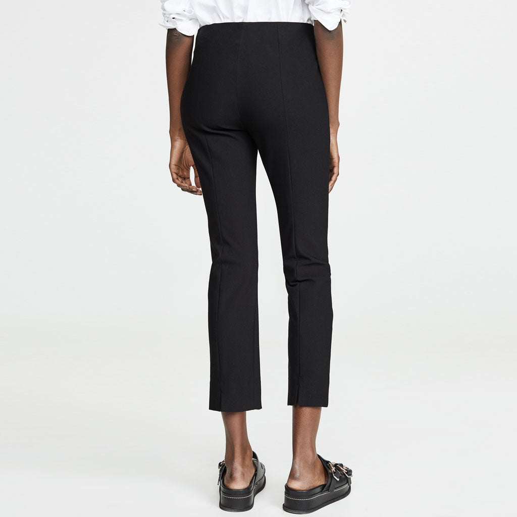 Classic Solid Mid Waist Ankle Length Slit Legging Pants - Black