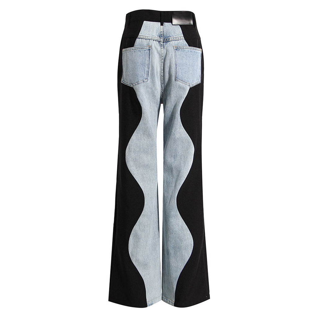 Contrast Wavy Two Tone High Waist Straight Leg Jeans