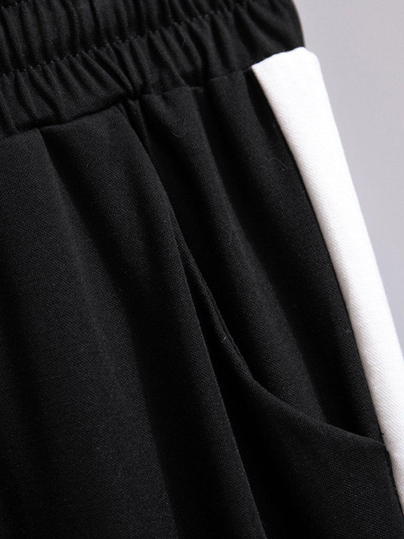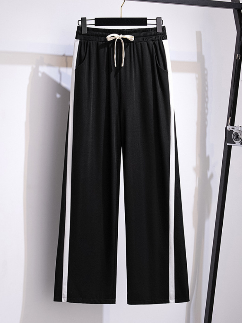cool summer high waist loose black Straight leg trouser pants with pockets