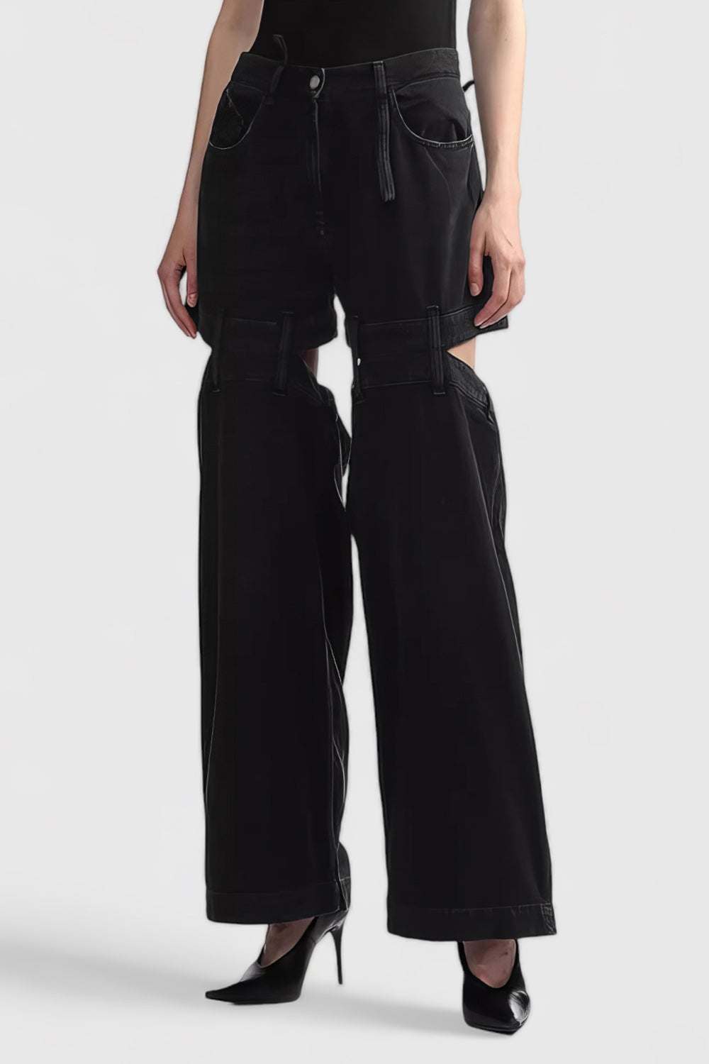 High Waisted Jeans with Back Cuts - Black