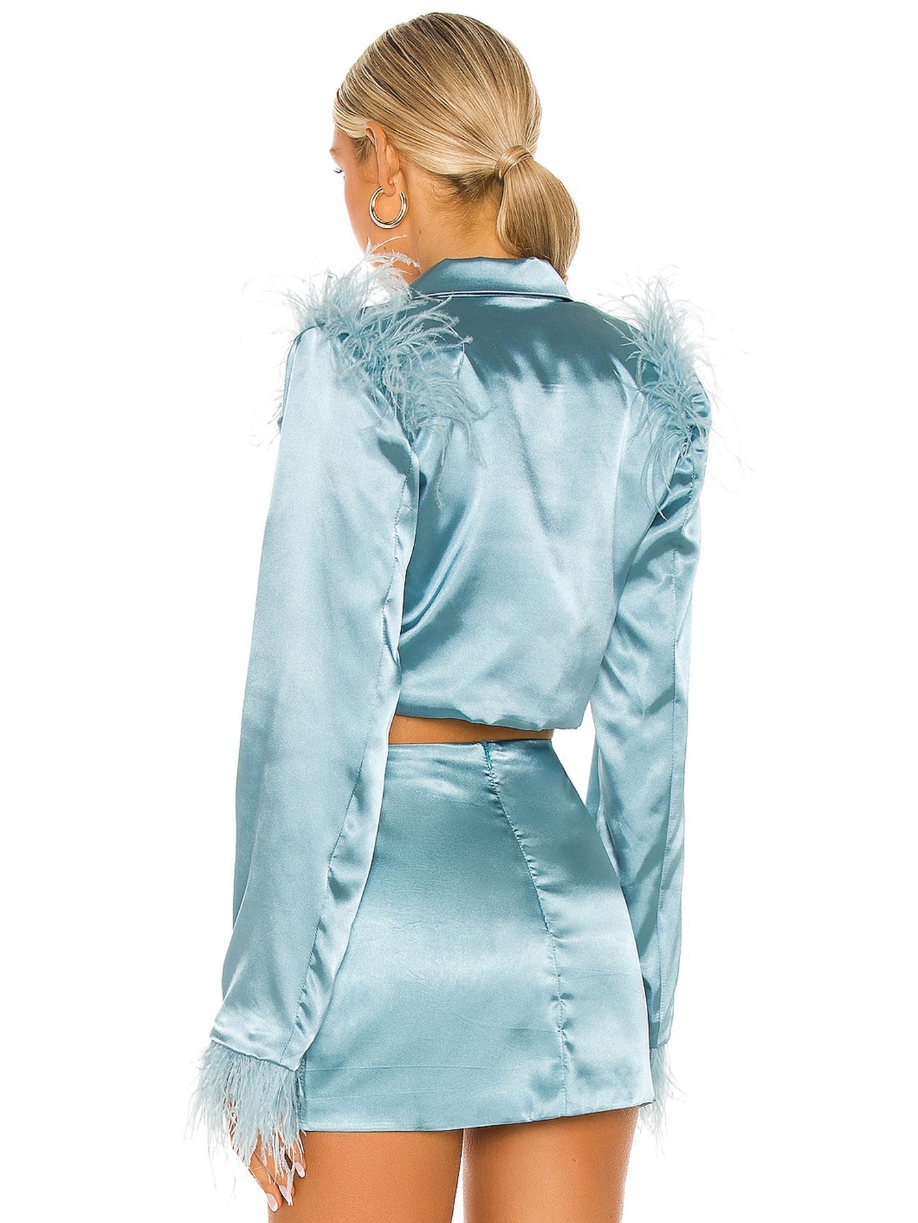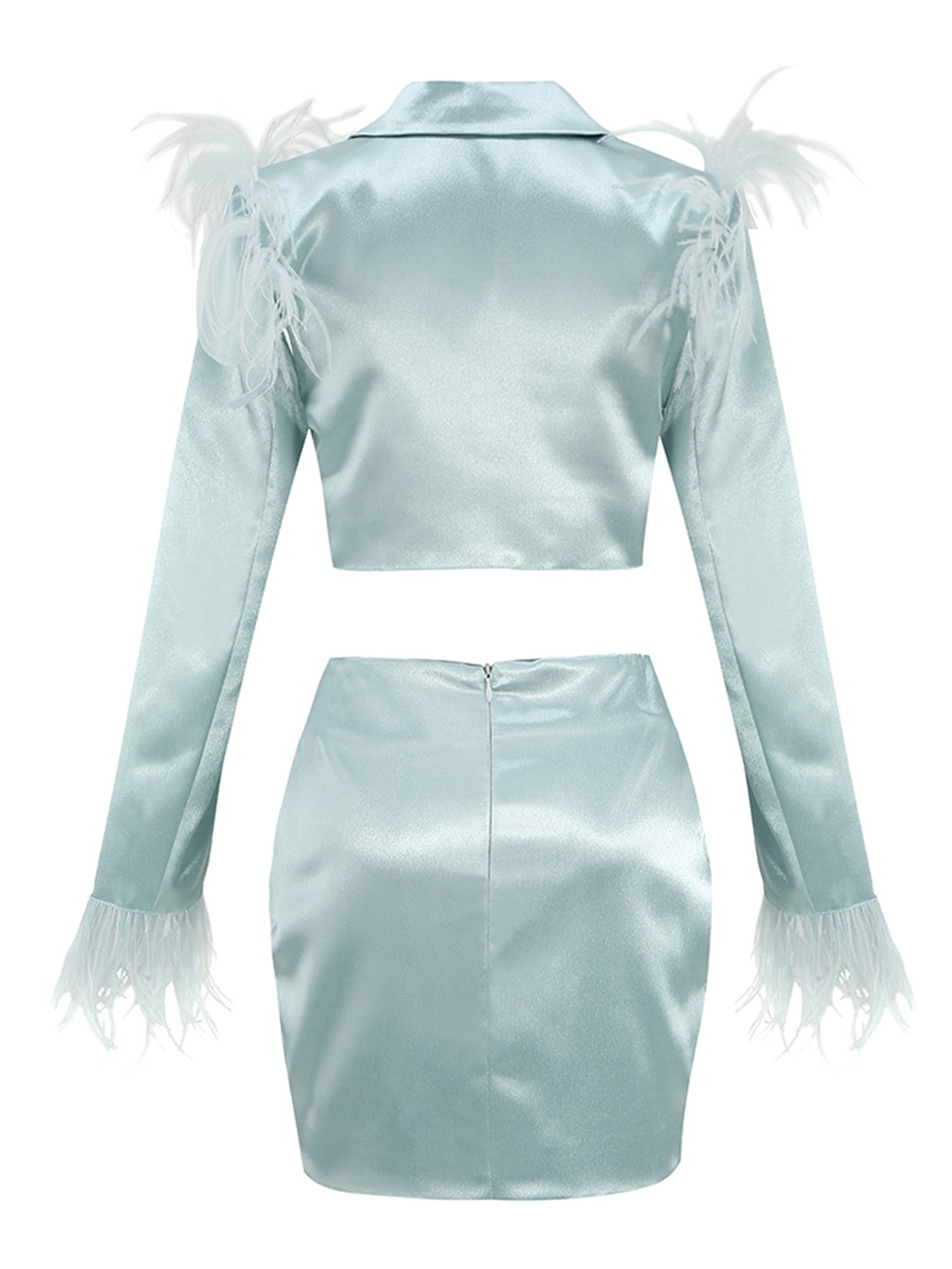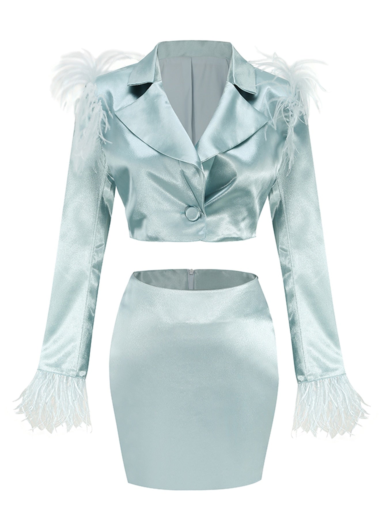 This versatile skirt set comes with two items that are both easy to wear. The set has a slim and stylish silhouette that can be worn with a number of different options to create many looks. The satin material gives neatness and a luxurious feeling to your outfit.