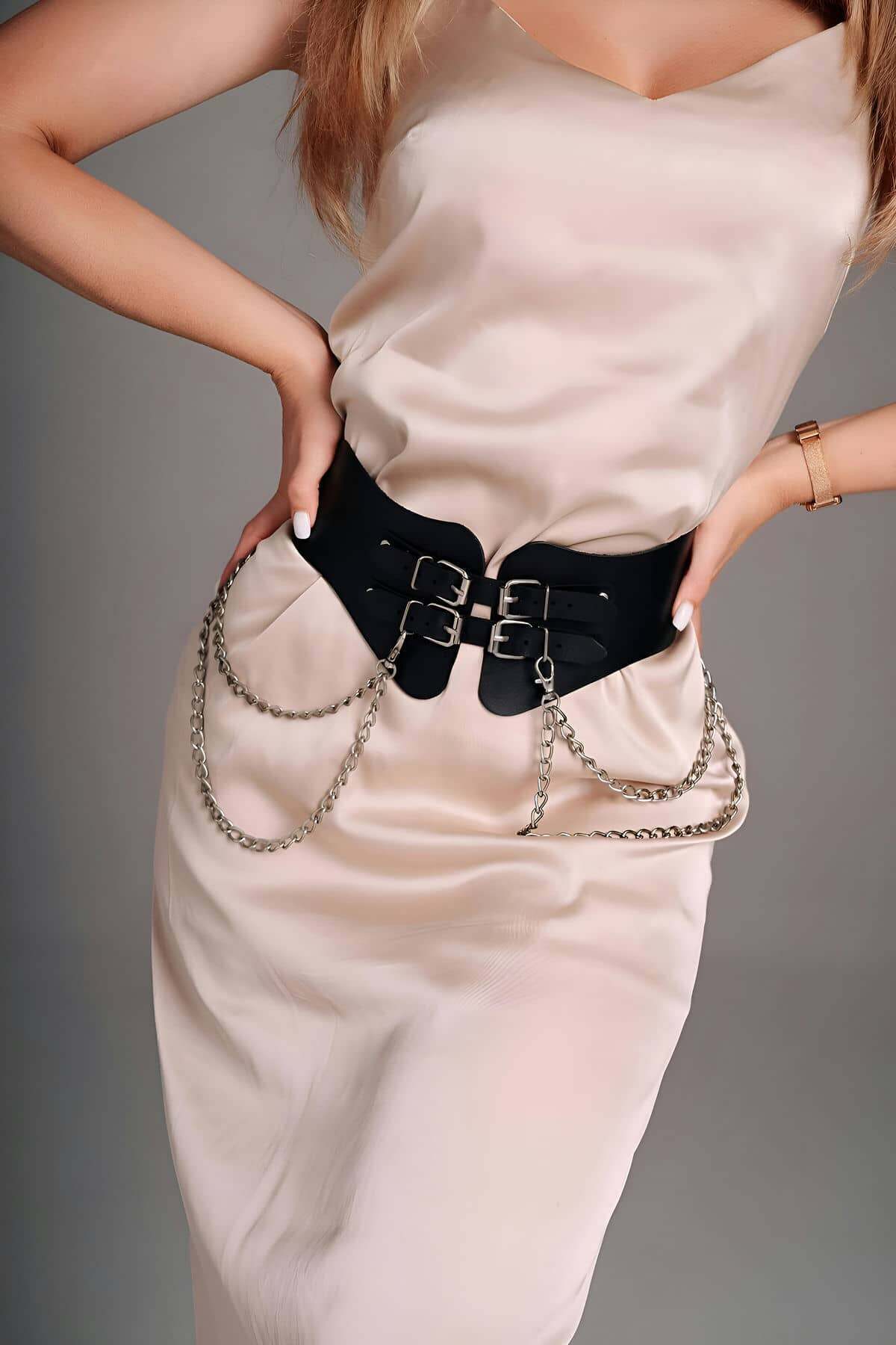 Leather Dress Belt, Chain Belt Over Leggings