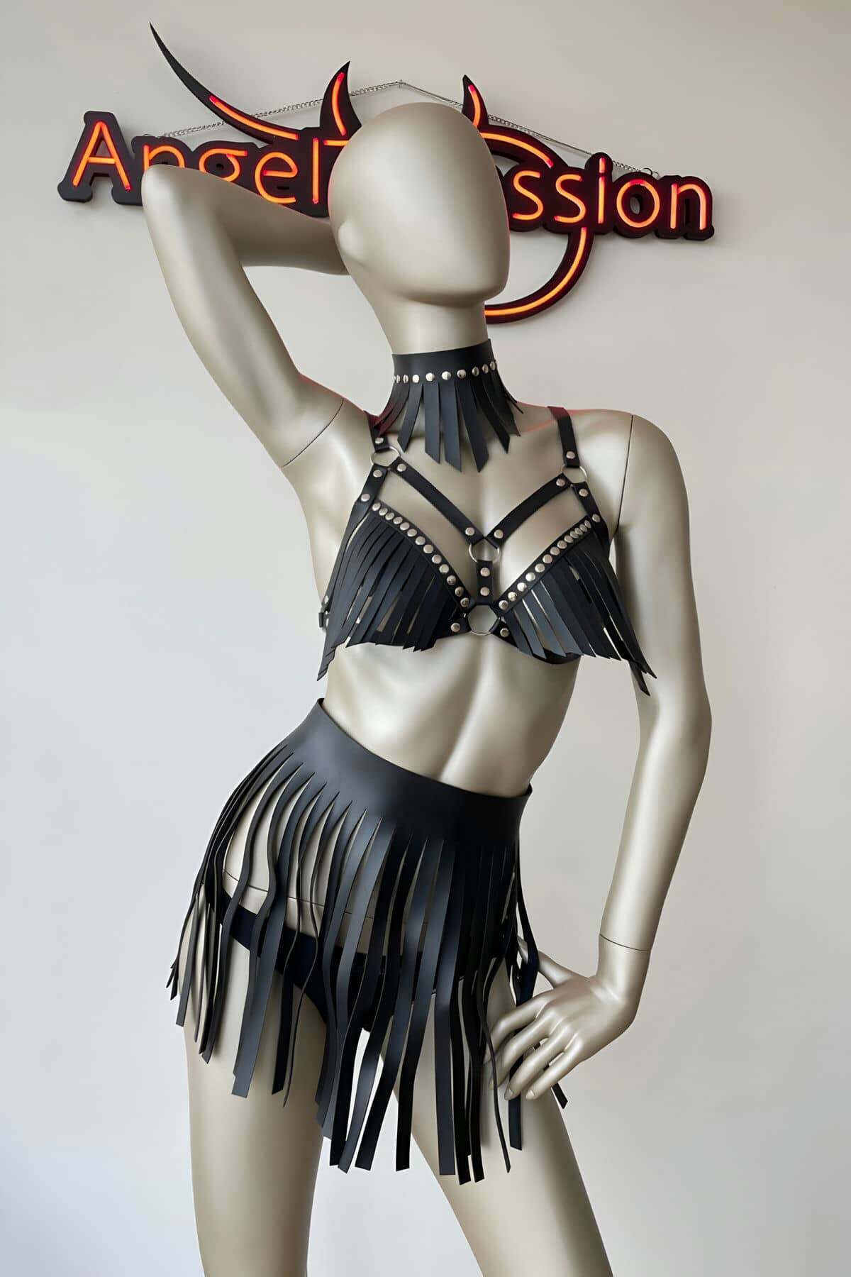Leather Tassel Skirted Fantasy Harness Set