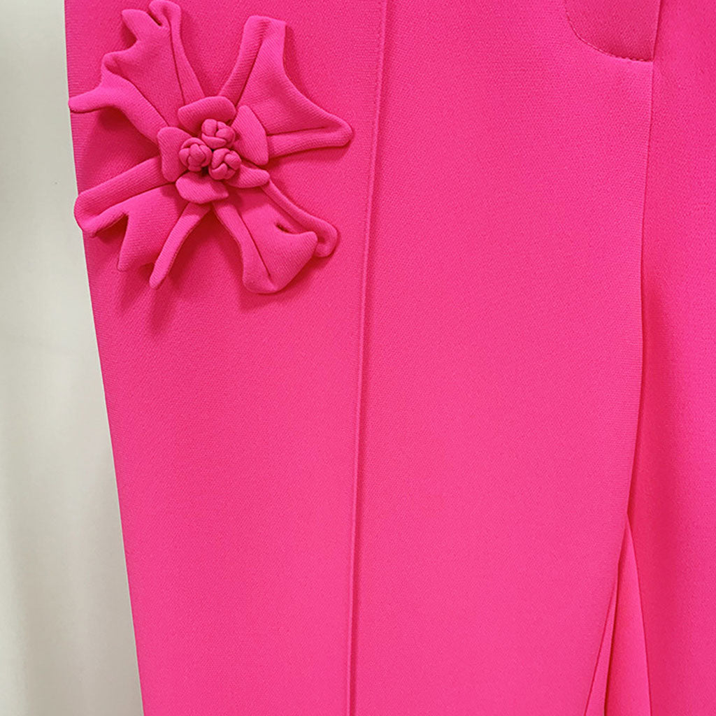 Modern Floral Appliqué High Rise Straight Leg Crepe Pants