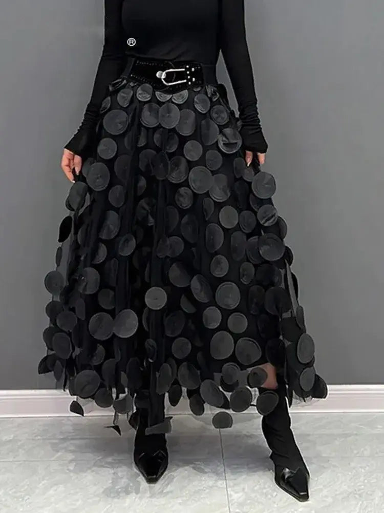 This Not A Lot To Say Midi Skirt is made from lightweight polyester for maximum breathability and comfort. Featuring a dot pattern and an A-line silhouette that falls to mid-calf, this skirt is the perfect balance of style and comfort.