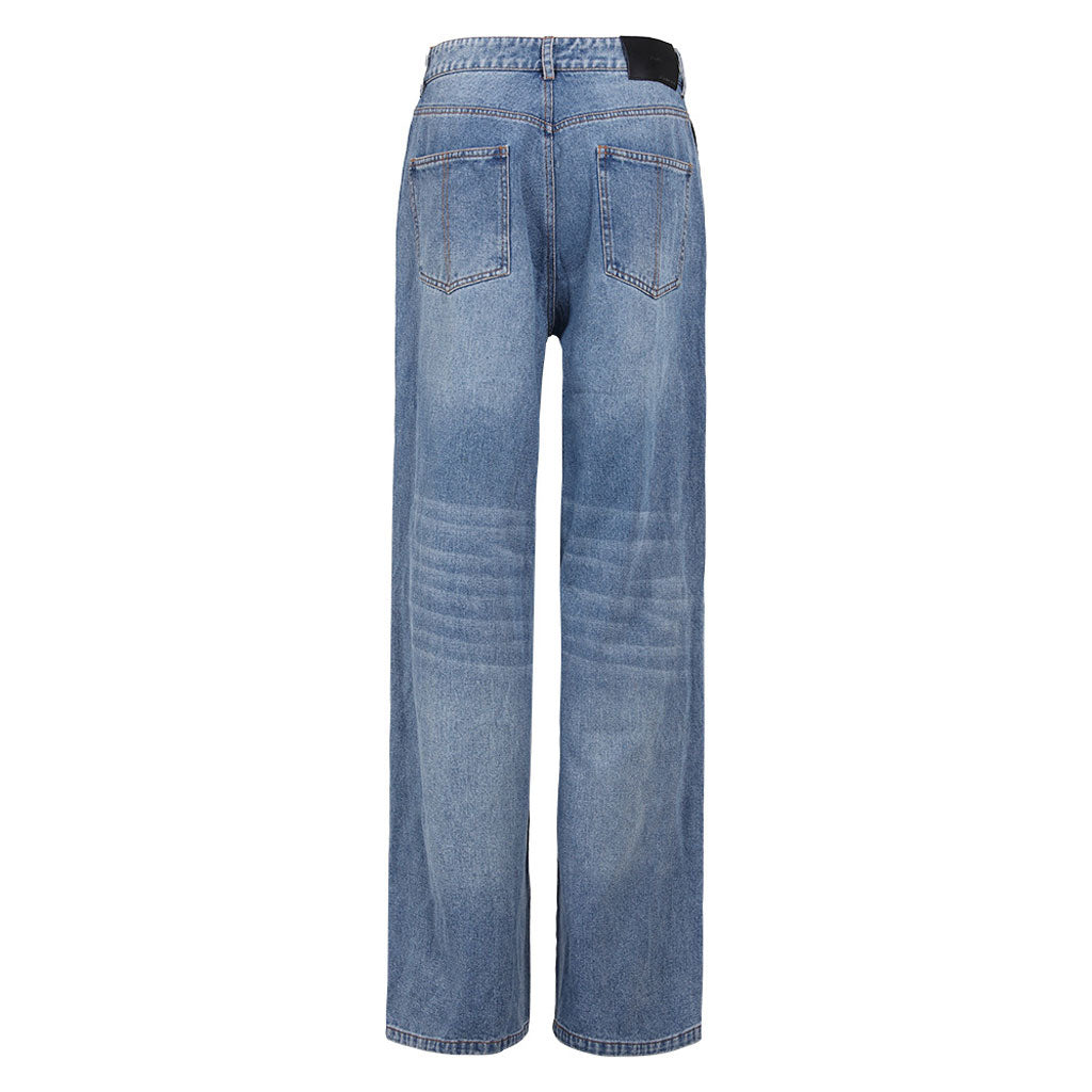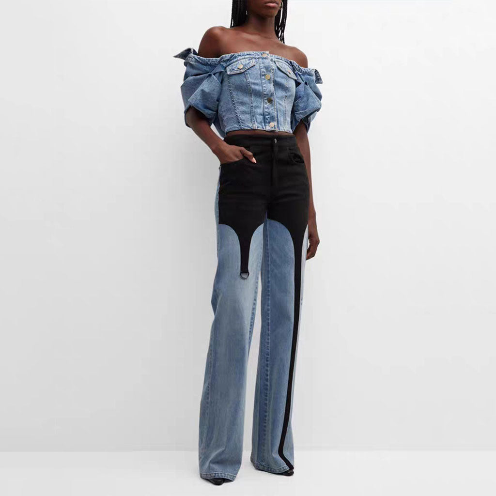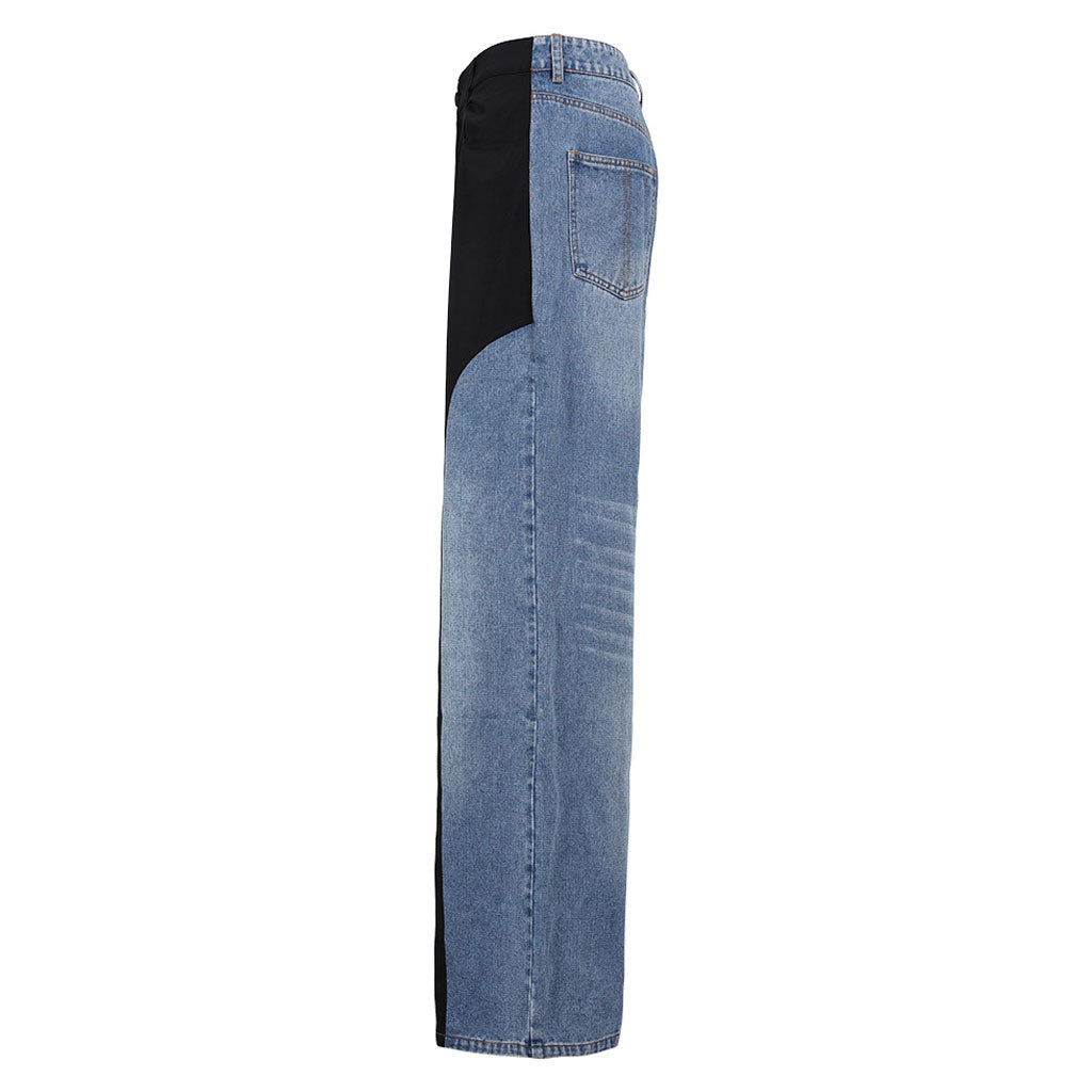 Offbeat Contrast Distressed Mid Waist Wide Leg Garter Hybrid Denim Jeans