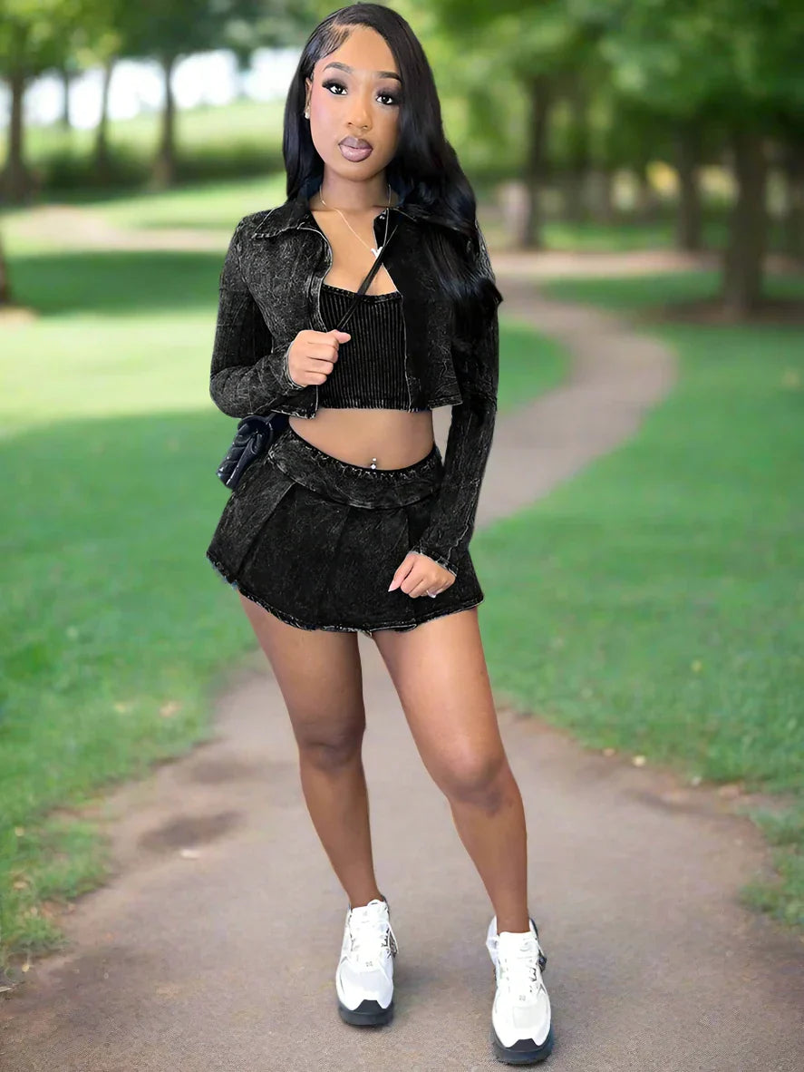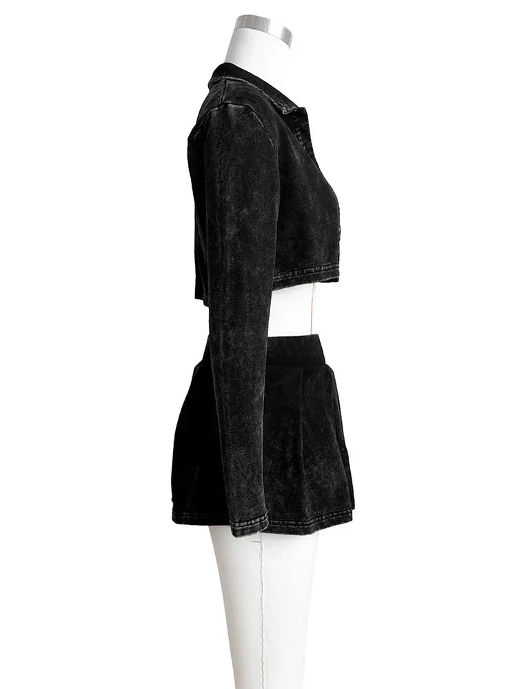 Unleash your inner artist with our Paint The Sky Skirt Set! Made with a blend of spandex and polyester, this set features a turn-down collar and solid color pattern. Express yourself and turn heads with this stylish and comfortable outfit.