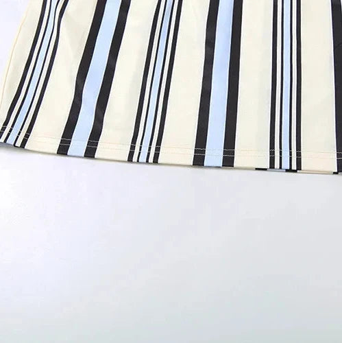 Be the center of attention with our Sing It Loud Skirt Set! Made from soft polyester, this set features a halter collar and an eye-catching stripe pattern. The pullover closure makes it easy to slip on and off. Show off your confident and stylish side with this must-have set!
