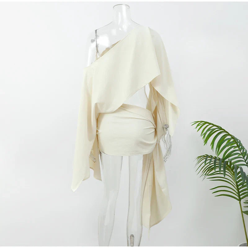 This stunning skirt set is made of high-quality polyester, with an asymmetrical design that adds a touch of unique style. The O-neck collar and pullover closure make it easy to wear, while the flare sleeves add a graceful touch. So beautiful, it's almost cruel!