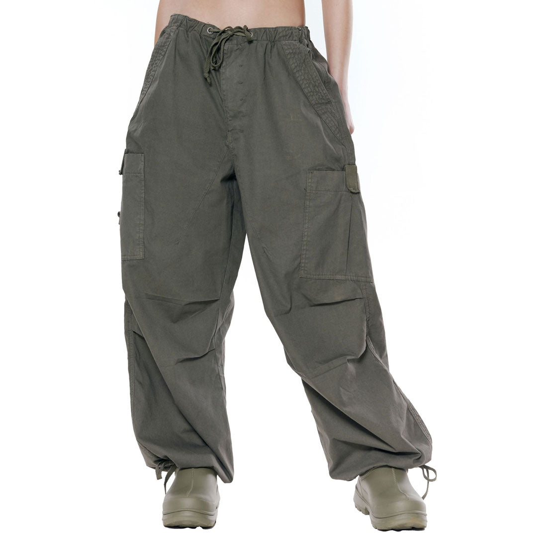 Street Style Drawstring Multi Pocket Wide Leg Baggy Cargo Pants - Army Green