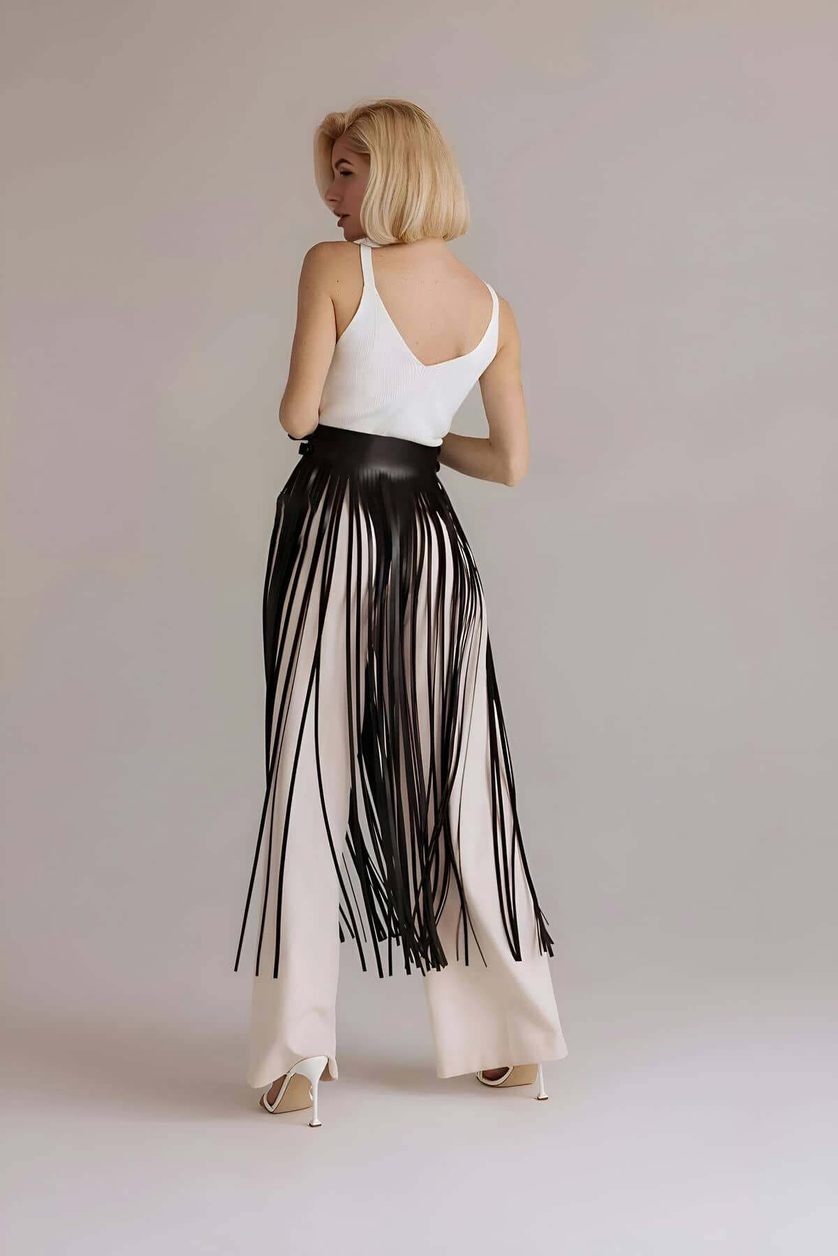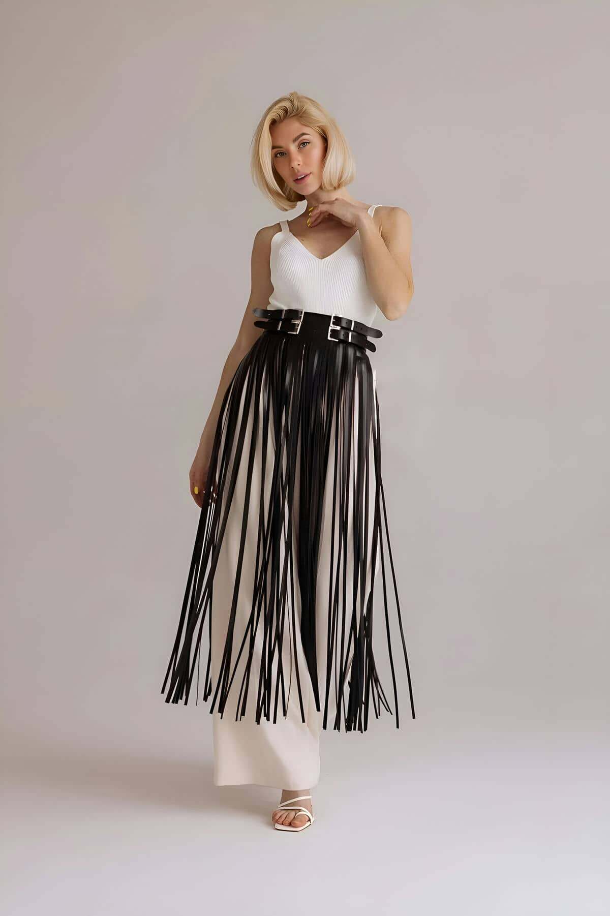 Tassel Leather Skirt, Stylish Tassel Leather Skirt Above Waist