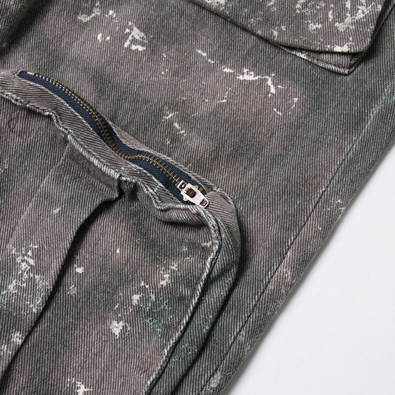 Vintage Acid Wash Multiple Pocket High Waist Straight Leg Cargo Jeans