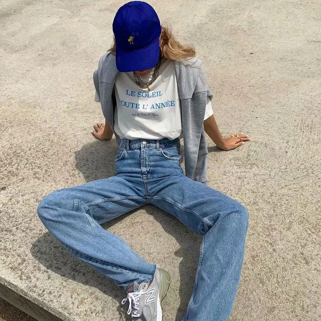 Vintage High Waist Frayed Trim Wide Leg Jeans - Dark Blue