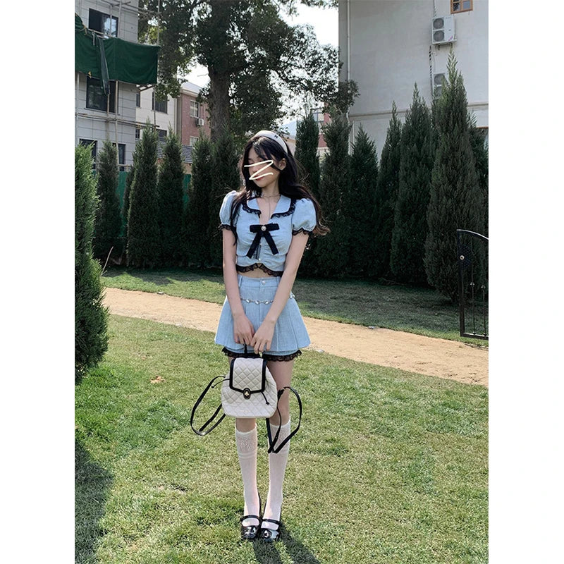 Transform into a ray of sunshine with our Walking On Sunshine Skirt Set! This must-have ensemble features charming puff sleeves and delicate lace and bow decorations. Made with high-quality polyester, the above-the-knee skirt offers a flirty and feminine look. Perfect for any occasion, this set will have you radiating joy and confidence wherever you go!
