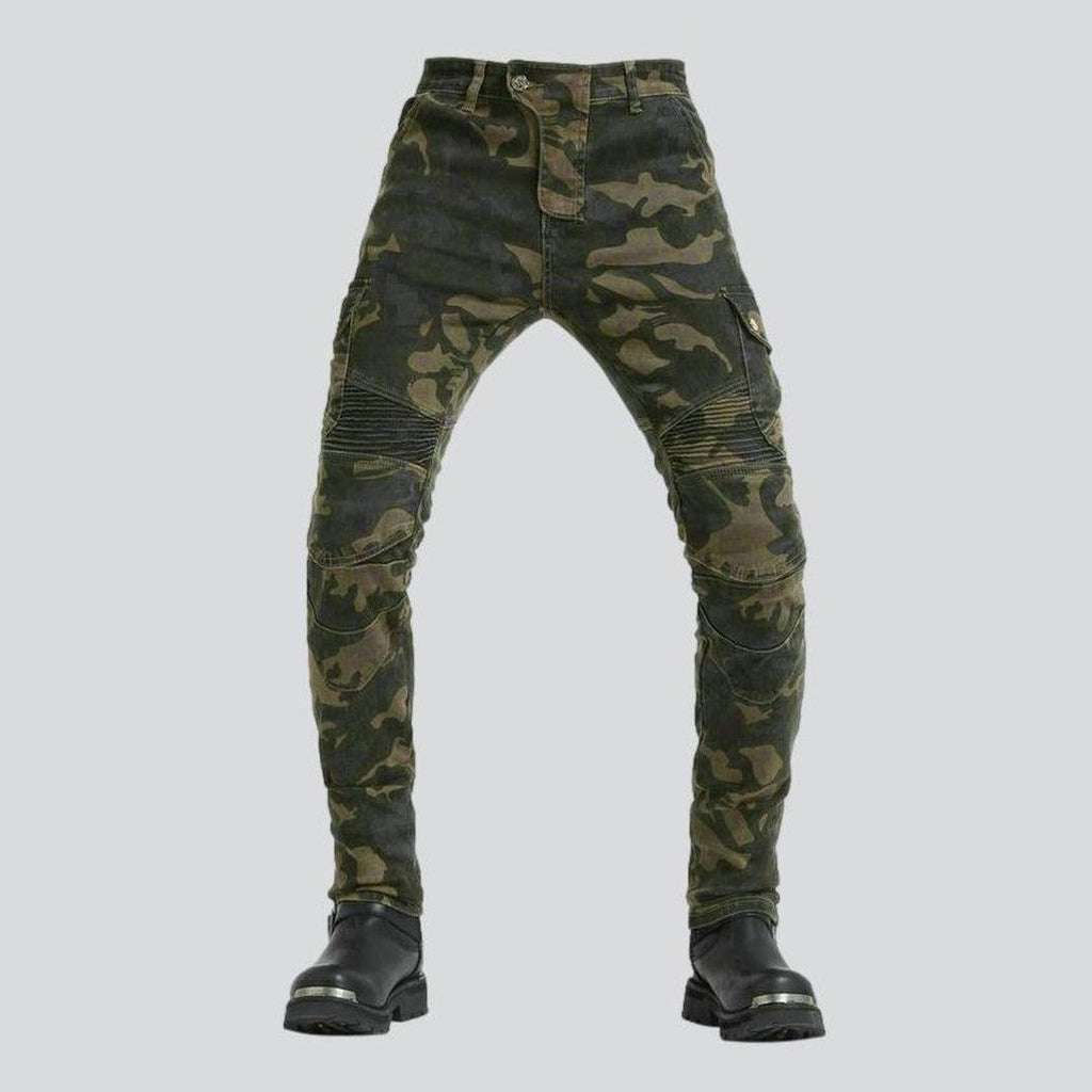 Put a stylish spin on your moto look with our 2023 Autumn Collection Wear Resistant Biker Denim Pants. These mid-waist. slender-cut biker vibe jeans are the perfect blend of trend and sturdiness. featuring stonewashed fabric. a zipper and button closure. and kevlar reinforcements for superior durability.