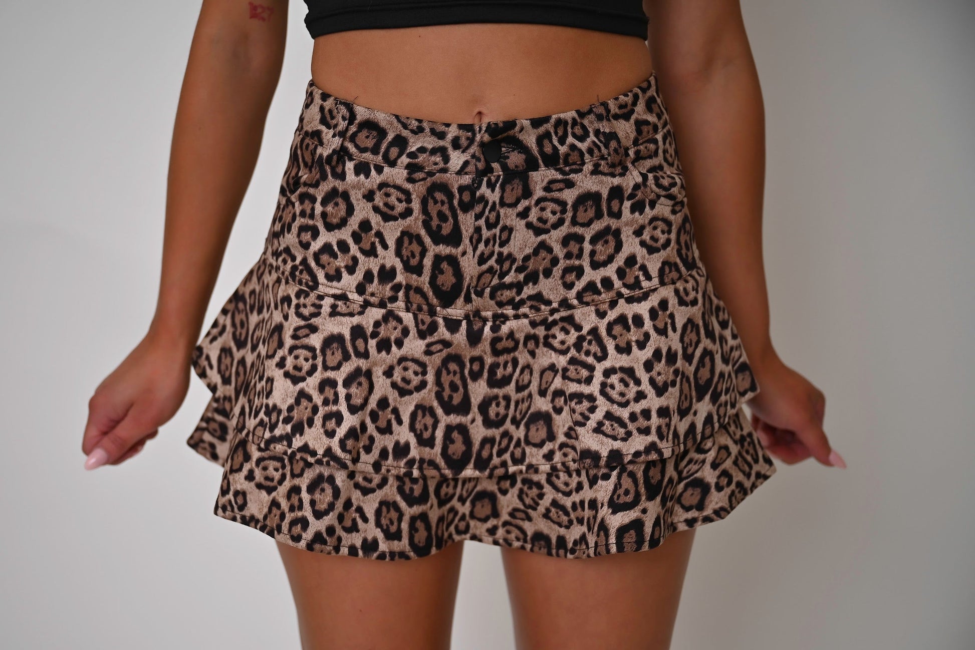 Unleash your wild side with our stylish leopard print skirt! Featuring a flattering A-line silhouette and a flirty ruffled hem, this skirt is perfect for any occasion. The comfortable waistband ensures a perfect fit, while the bold print adds a touch of fierce fashion to your wardrobe.