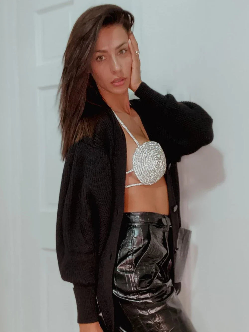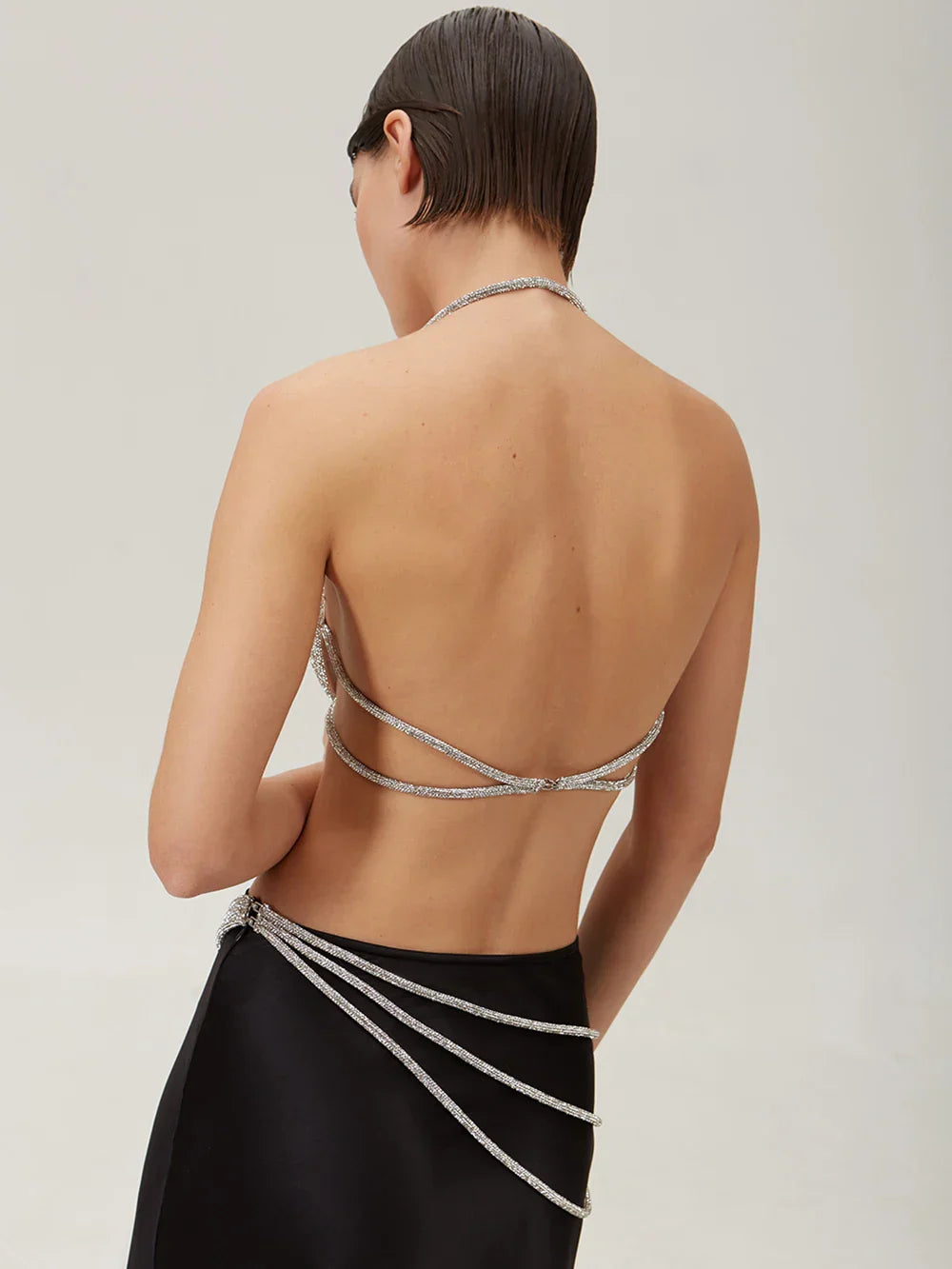 Unleash your inner confidence with our bra. This solid polyester bra is designed to support and flatter, while the chain detail adds a touch of edge. Trust in yourself and your style with this must-have addition to your wardrobe.
