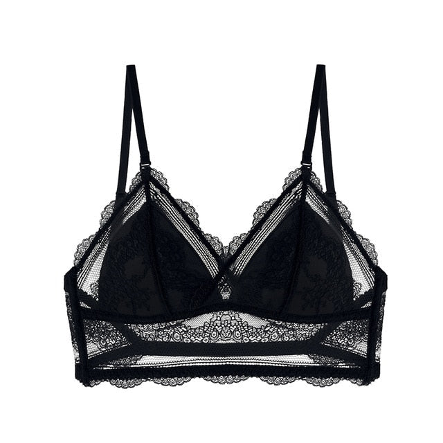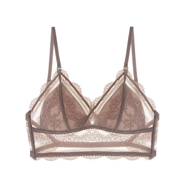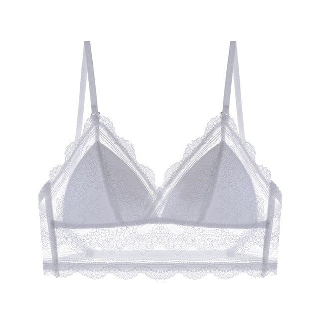 Triangle Padded Seamless Bra with Solid Color, Lace, and Polyester Material