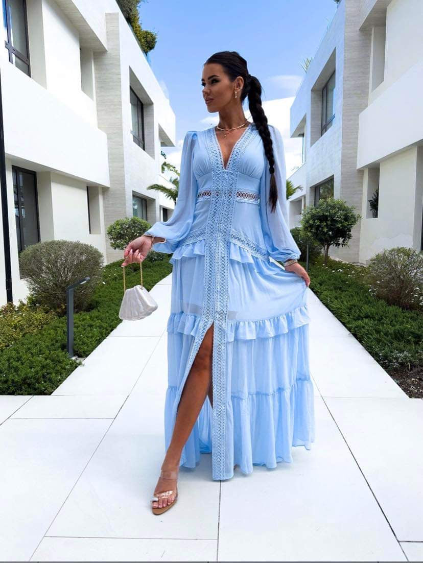 Tiered Maxi Length with Lace Inserts: Creates graceful movement and elevates the overall style with intricate lace detailing.