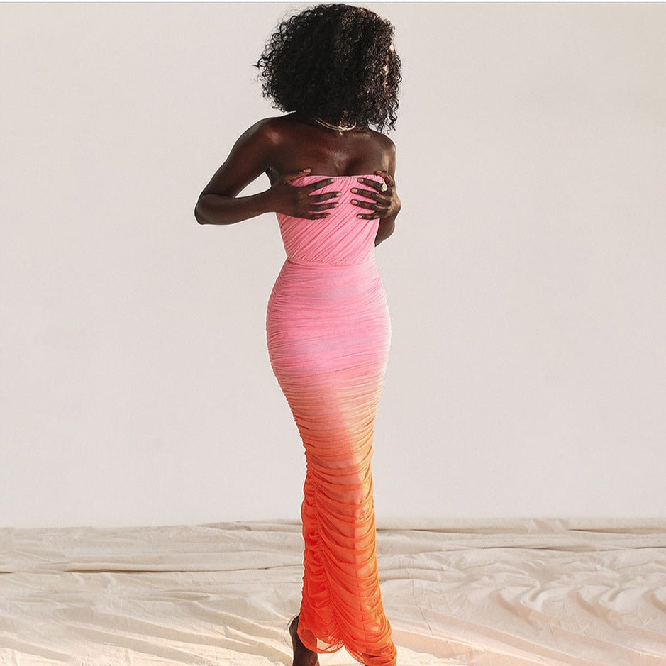ASHY GRADIENT PINK ORANGE BODYCON MAXI Dress