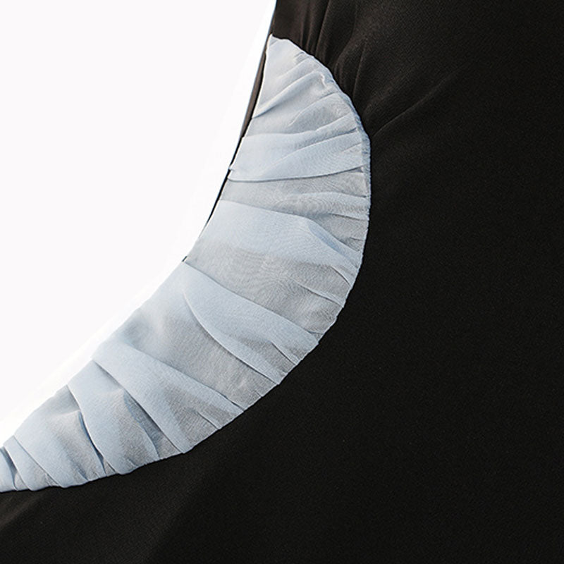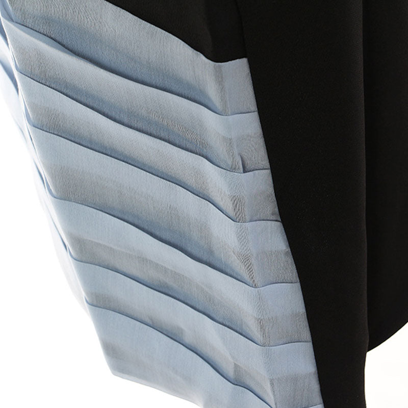 Asymmetrical Contrast Pleated Panel Round Neck Sleeveless Dress