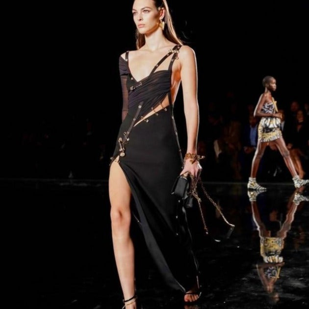 AYAME CLASP PIN HIGH SIDE SLIT MAXI Dress