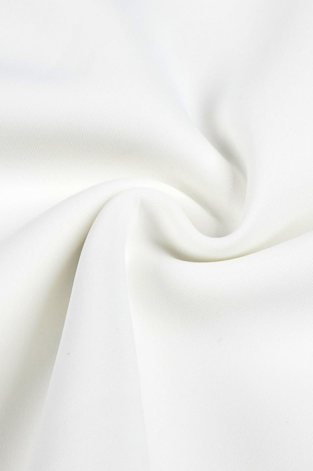 Mini dress in innocent white with A-silhouette skirt. The dress features a boned mesh bodice, curved hemline and elastic back, ensuring a comfortable and form-fitting look. The padded cups are adorned with a hand-crafted heart-shaped crystal embellishment, adding a touch of glamour. The dress is fastened with a concealed side zipper closure and hook and eye, ensuring a seamless finish. Fully lined. Crafted to perfection for your special day, this dress radiates elegance and grace.