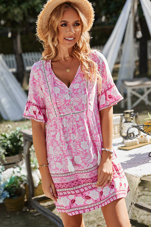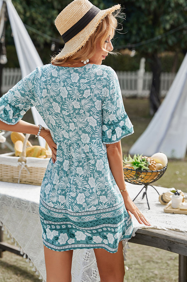 Boho Short Sleeve Floral Mini Dress