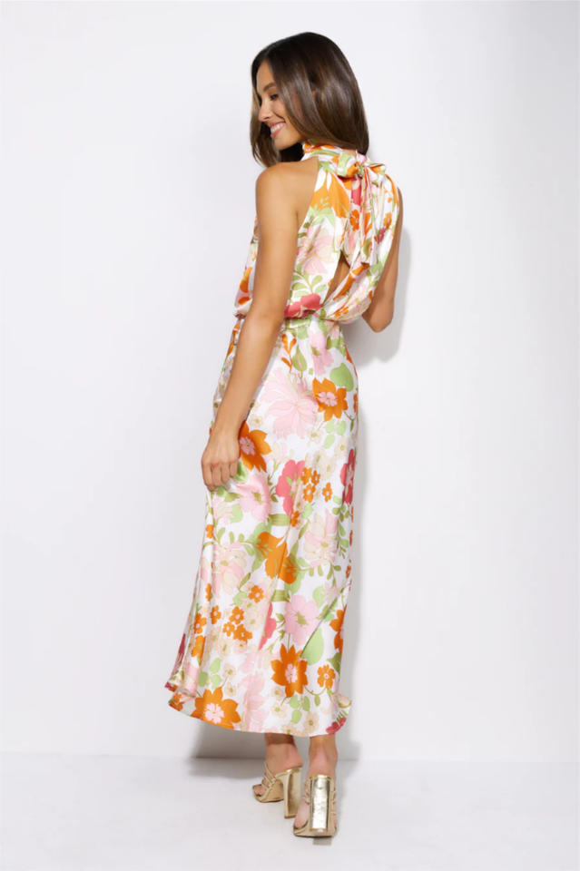 Dress to impress yourself in this amazingly hot midi. Featuring a drape neckline with a fitted waist line. an open back with a lace-up back detail and a mermaid skirt. Style yours with mules and waves.