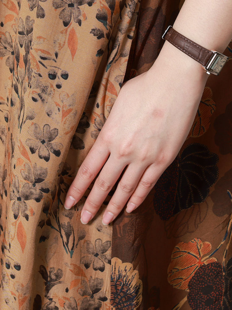Casual Printed Flower Short Sleeved Loose Waist Midi Dress