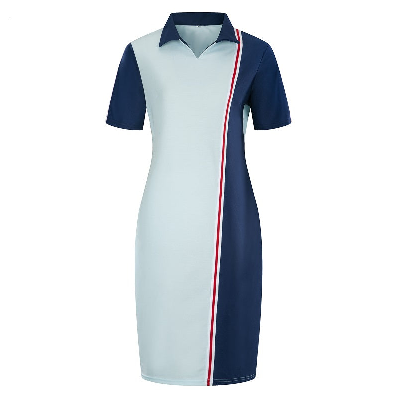 Casual Short Sleeve Patchwork Women Plus Size Polo Dress