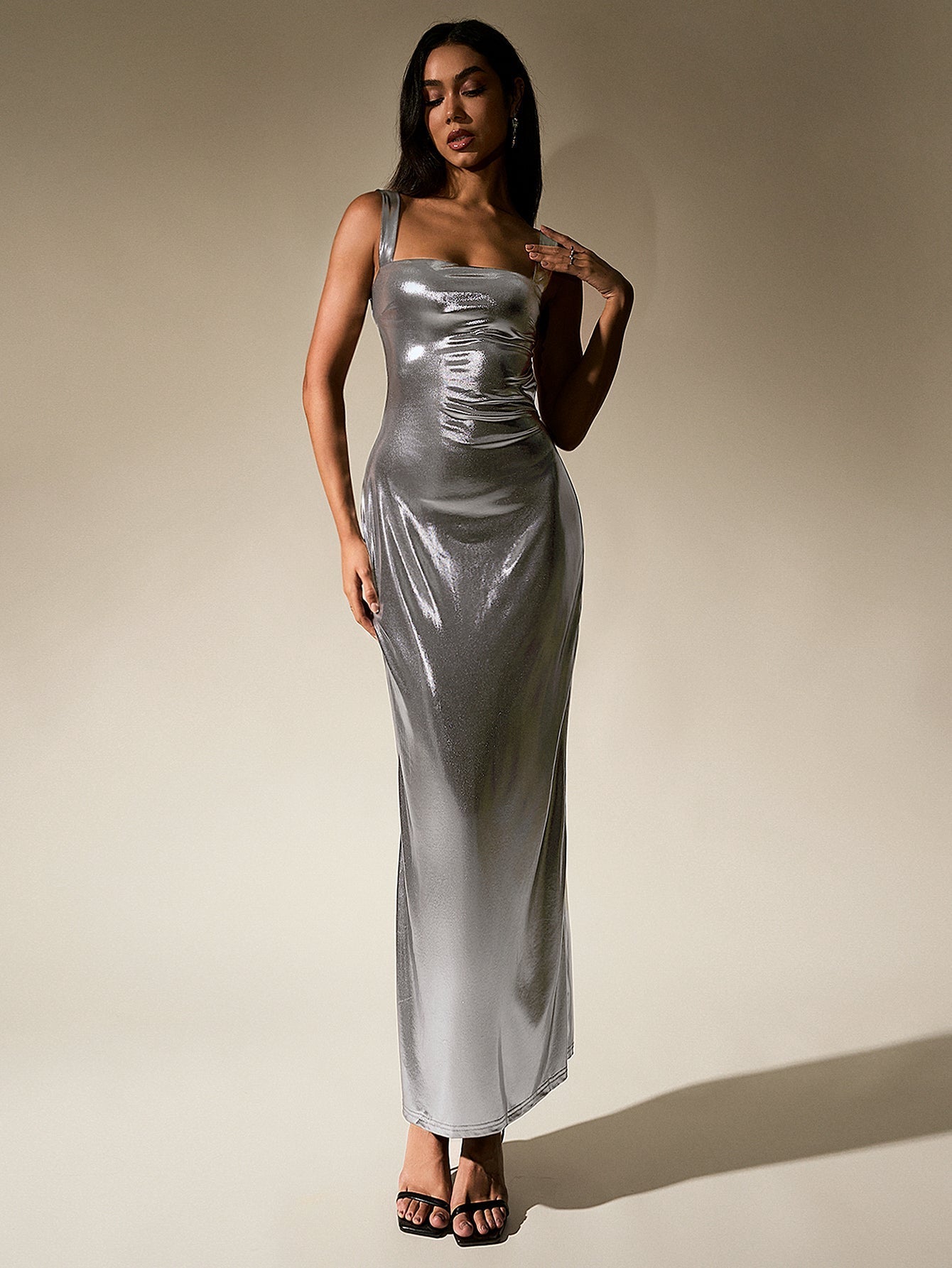 Cut Out Misty Gold Metallic Bodycon Maxi Dress