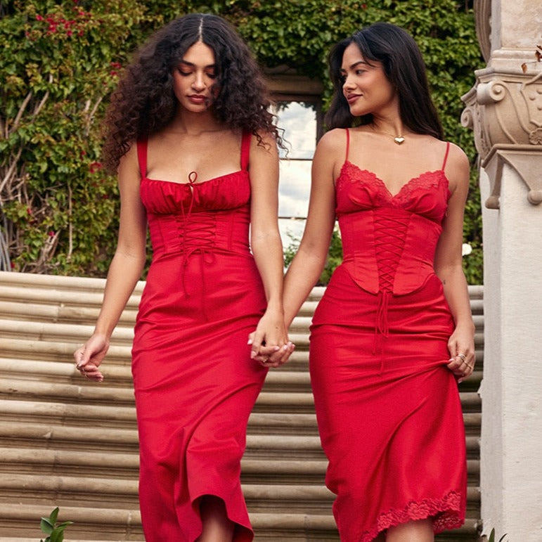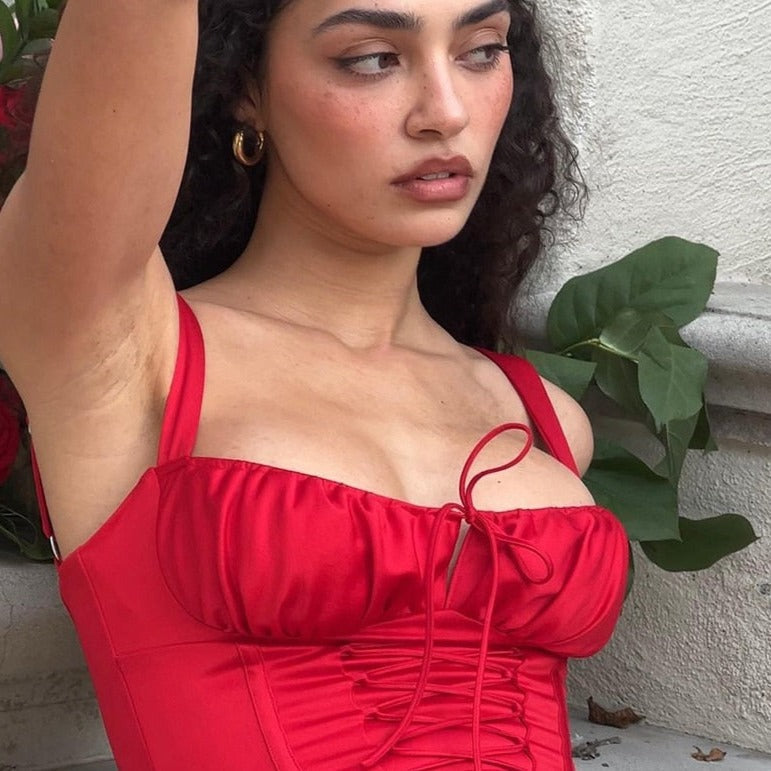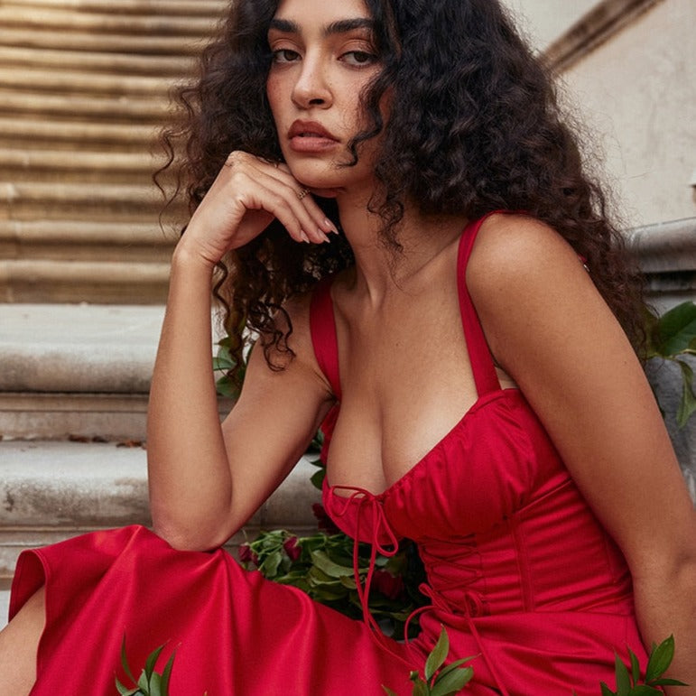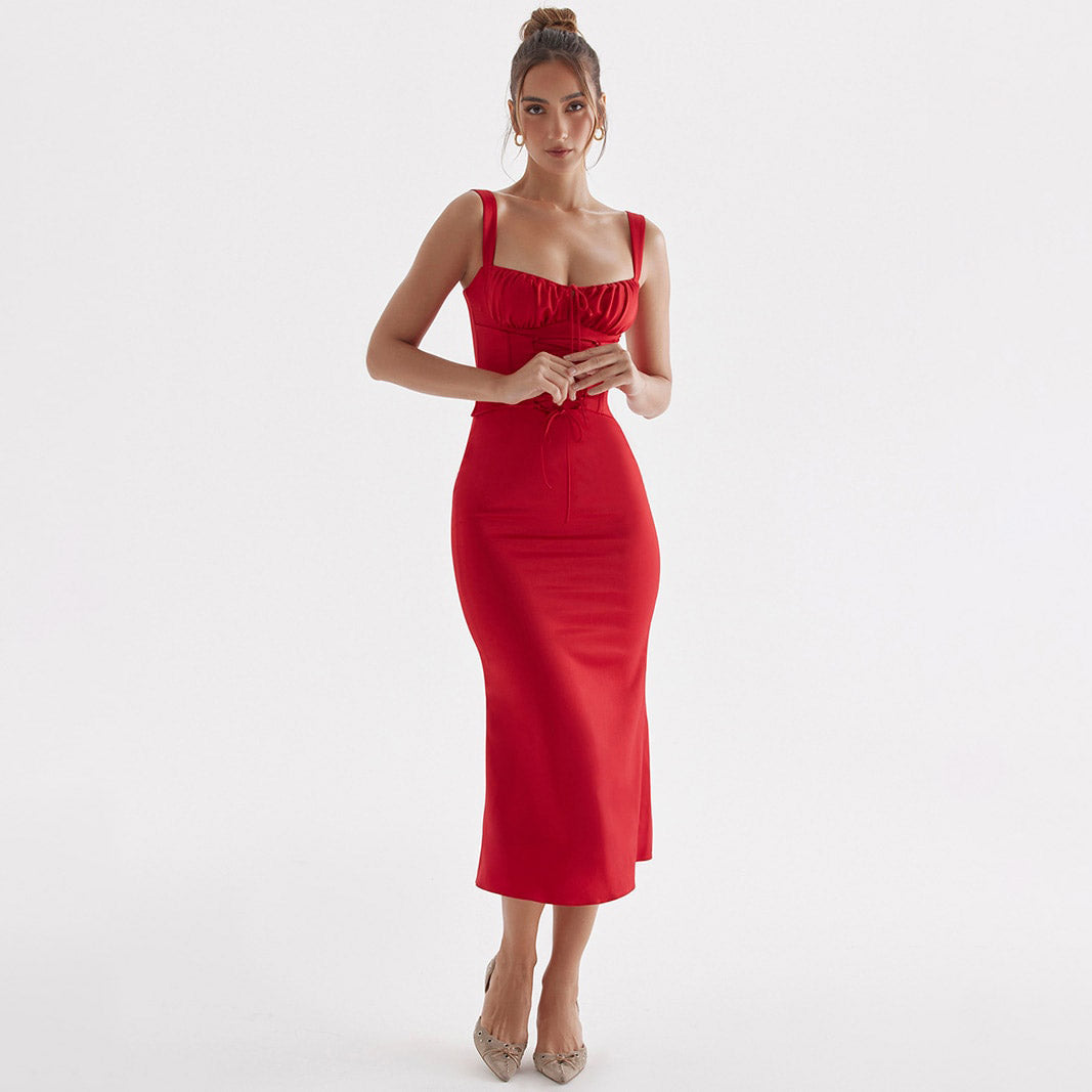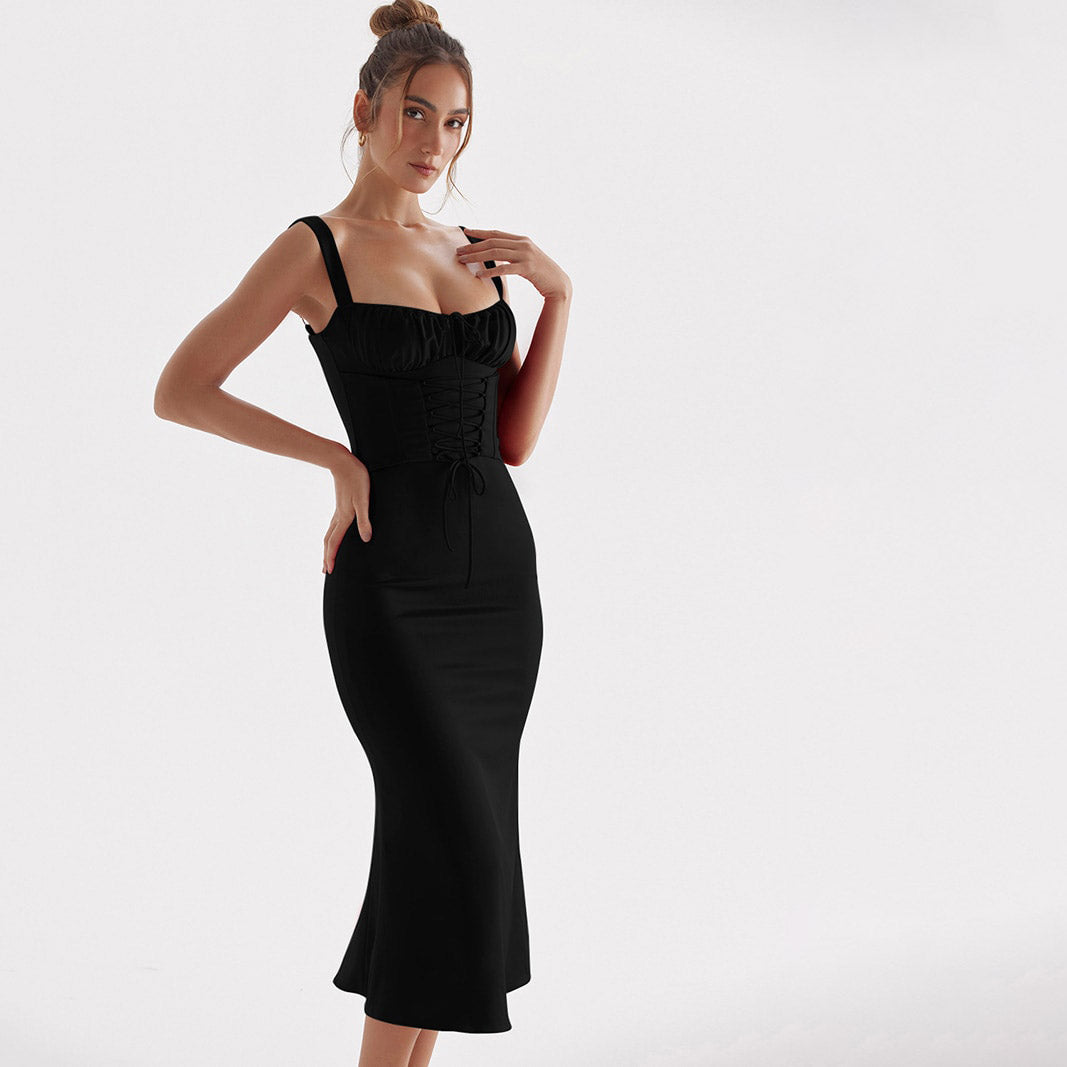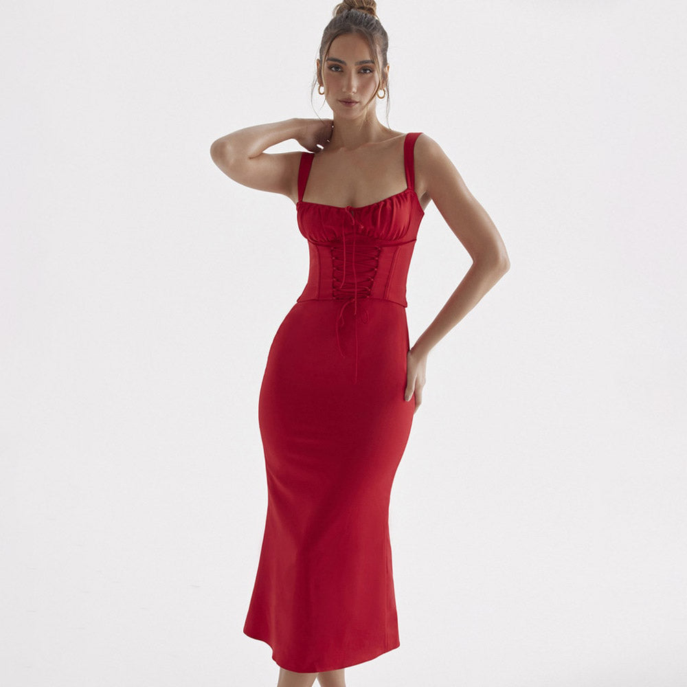 DYNA CORSET STRAPS Lace UP MIDI Dress