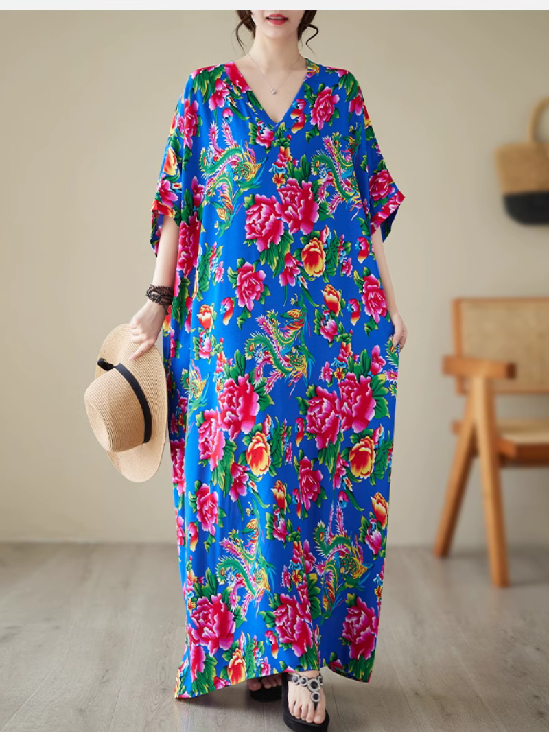 Elegance Cool Flower Kaftan Dress