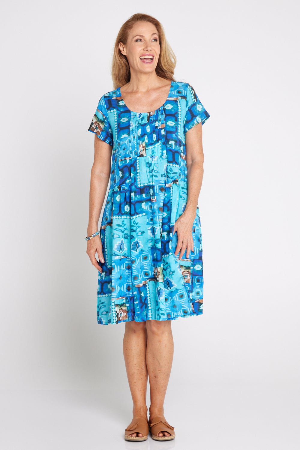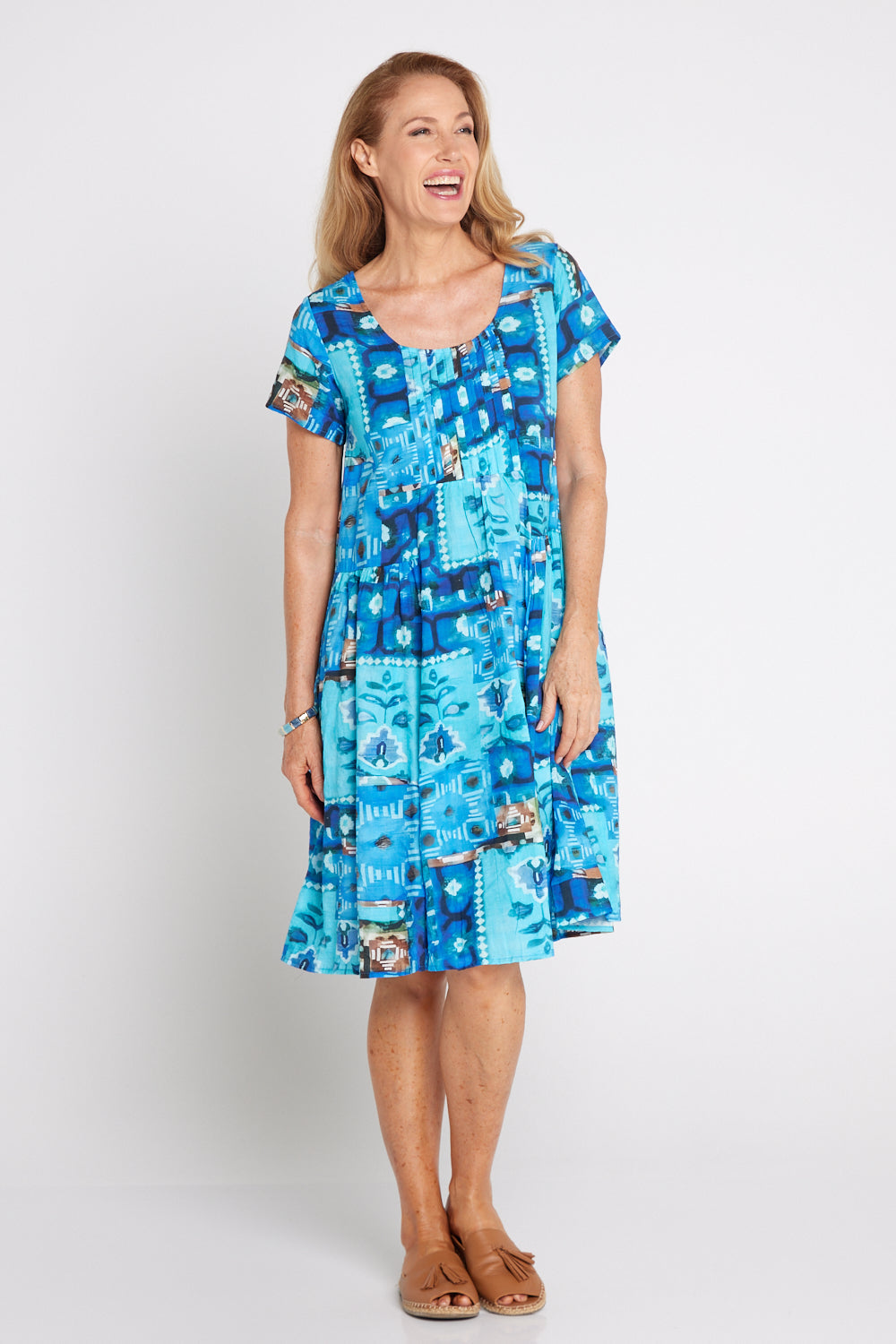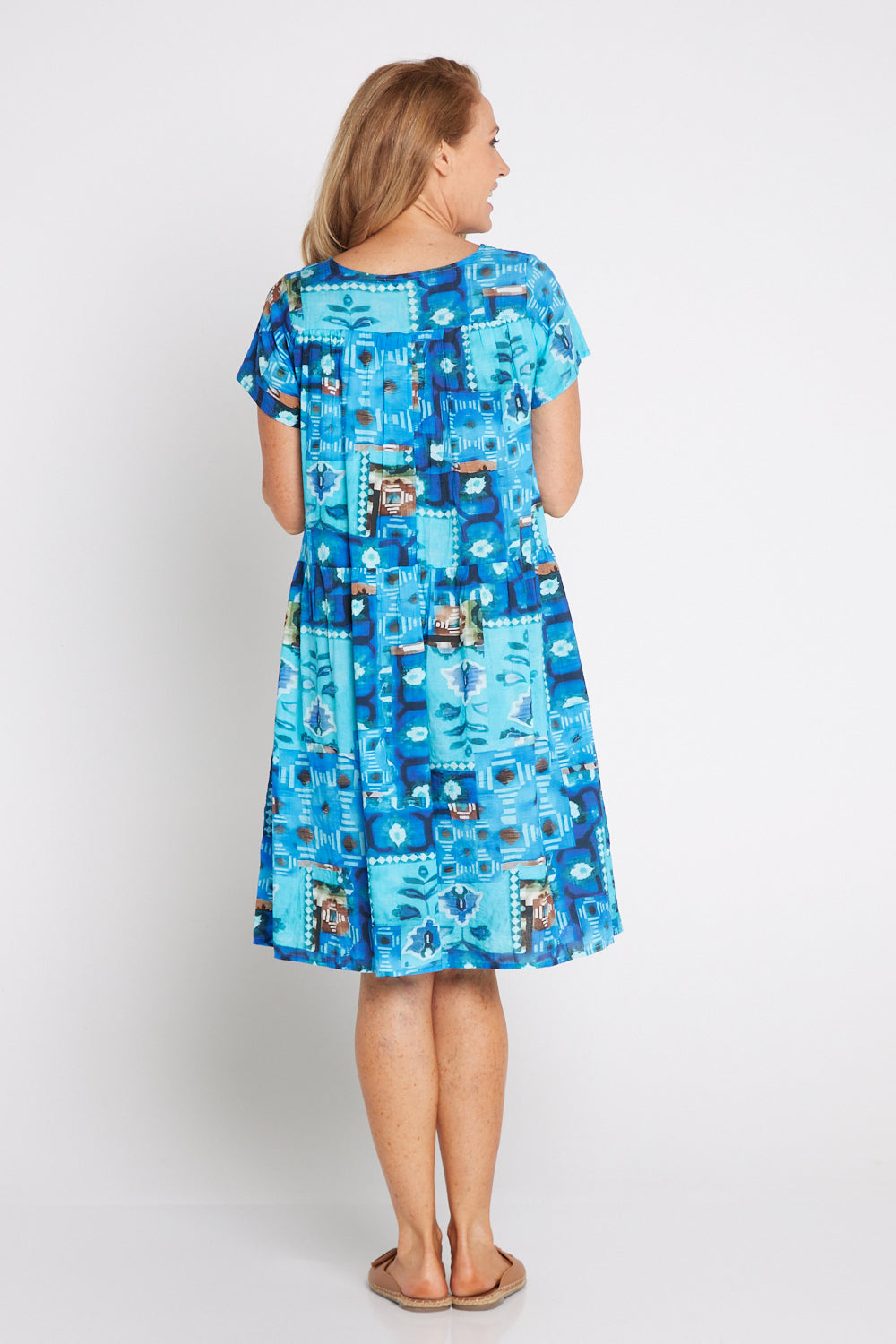 Celebrate the arrivals of new prints in one of our favourite silhouettes for a summer dress. Crafted from a feather light fabric, it's a dream to wear on hot days. The Blue Collage print combines vibrant colours and artistic patterns to create a bold statement piece.