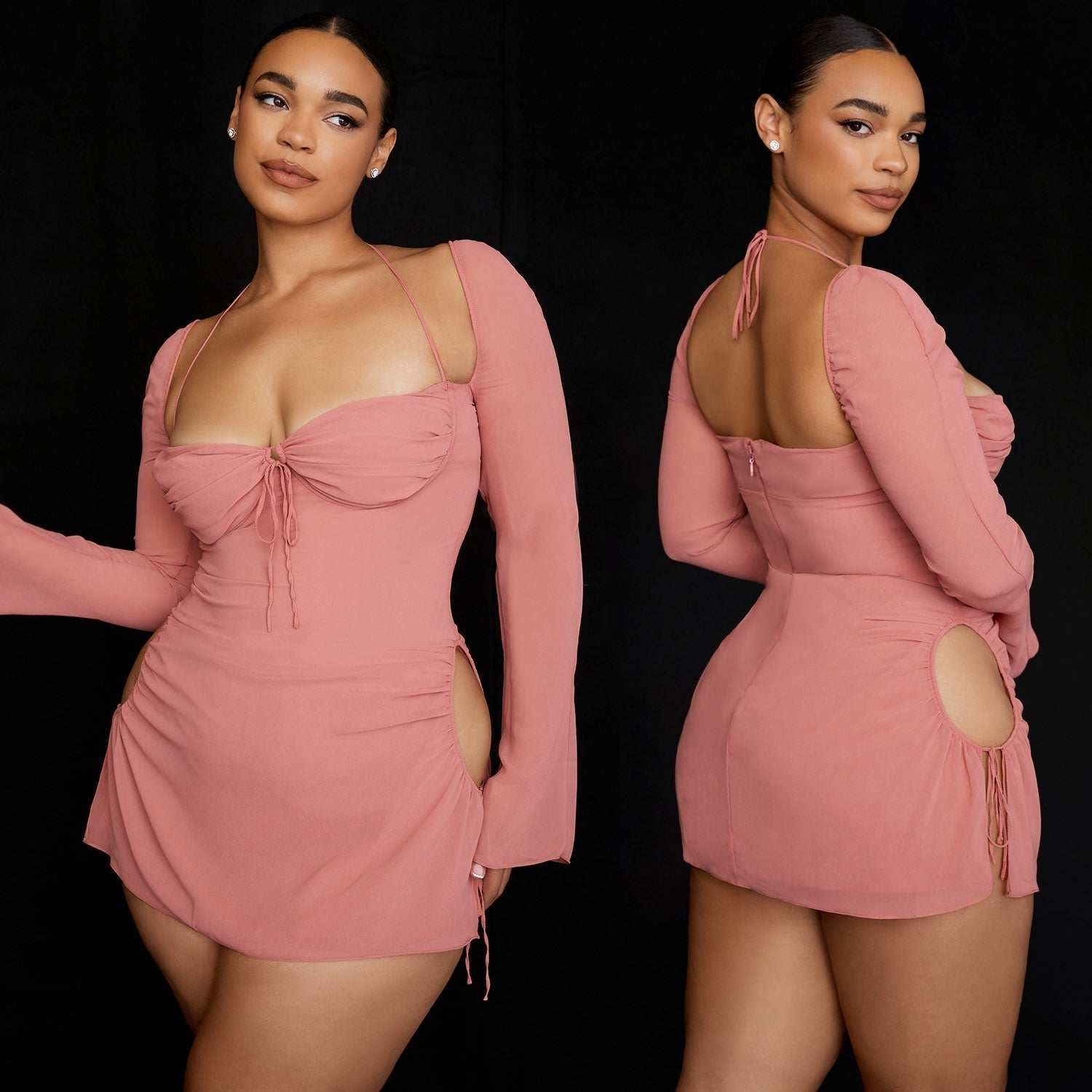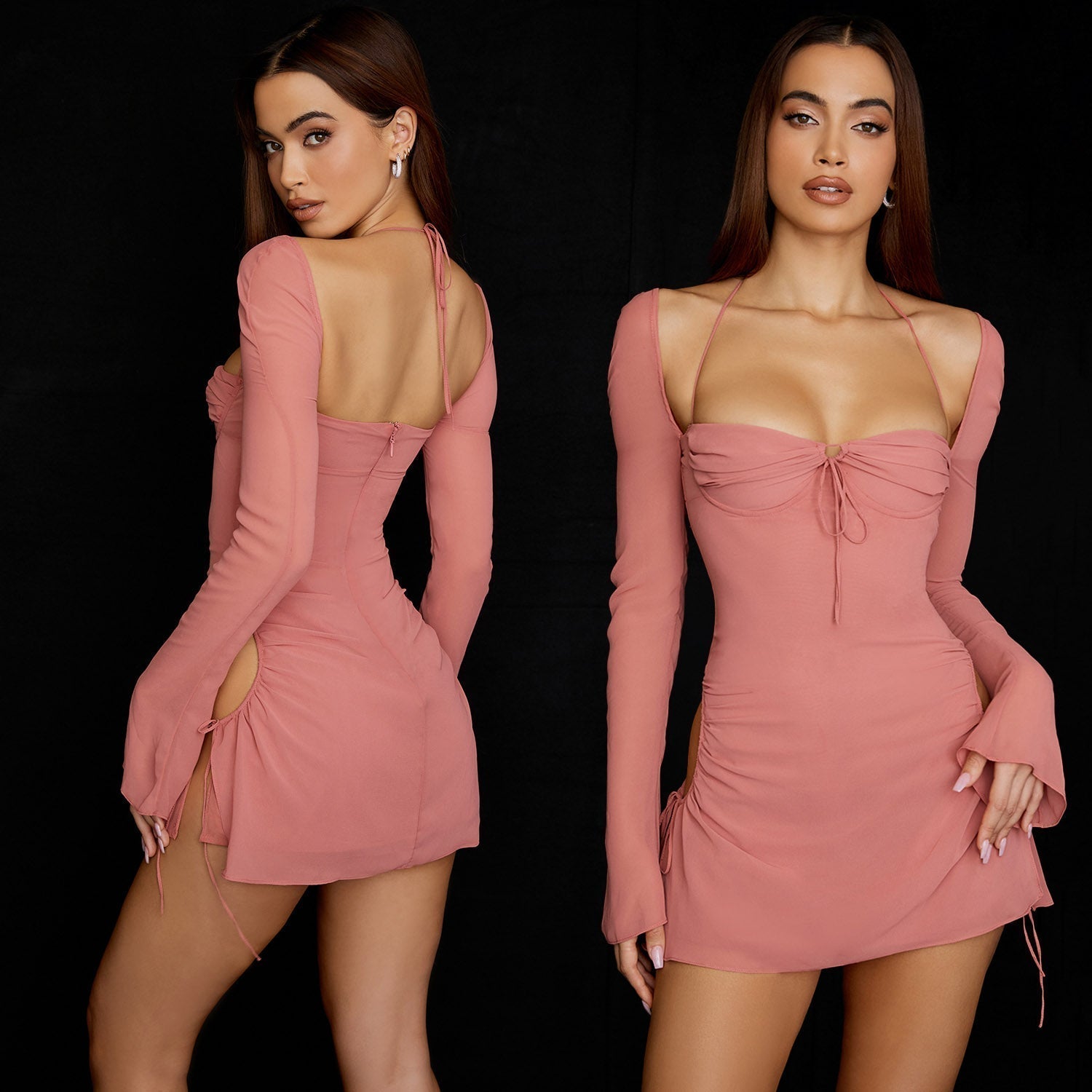 ETSUKO Long Sleeve Lace UP Mini Dress