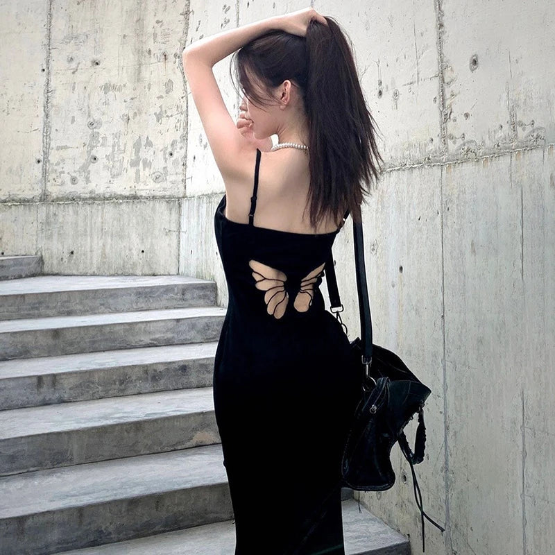 This stunning maxi dress will fill you with love and confidence! Its figure-hugging silhouette accentuates your curves, while the elegant butterfly-shaped cut-out on the back adds a touch of whimsy. Perfect for a night out or special occasion, its polyester and spandex material will keep you comfortable all evening long.