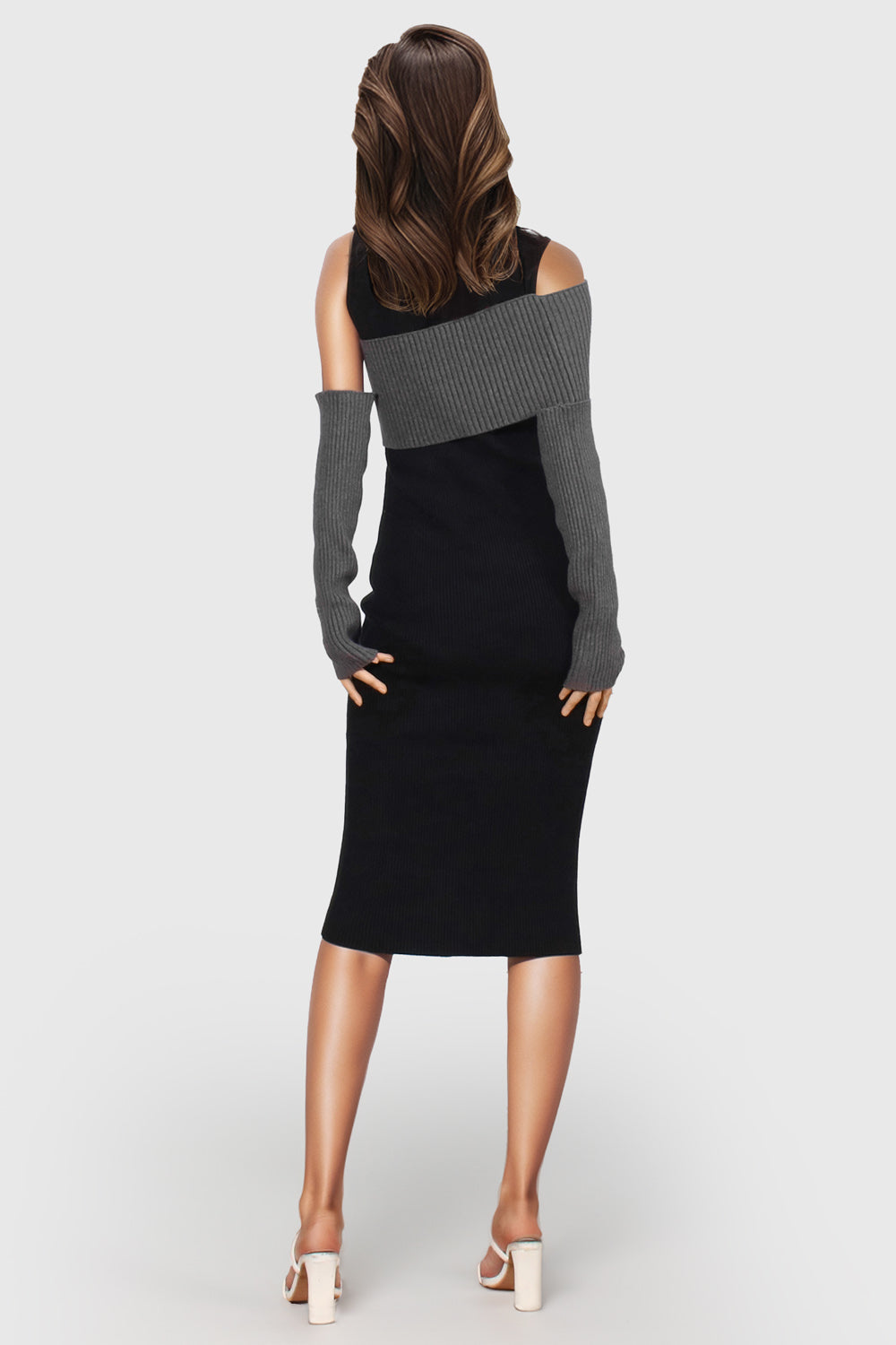 Embrace the allure of sophistication with this midi dress. The design is elevated by the intricate knitted details. adding a layer of texture and depth to the piece. The round neckline offers a timeless appeal. while the stretchy fabric promises a fit that's as comfortable as it is flattering.