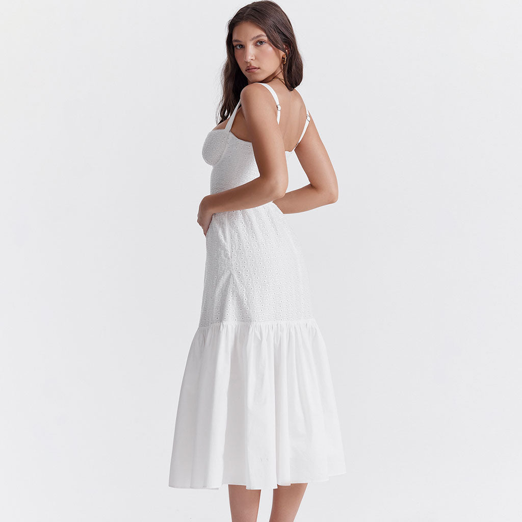 Floaty Sweetheart Neck Pocket Side Fit & Flare Broderie Anglaise Midi SunDress