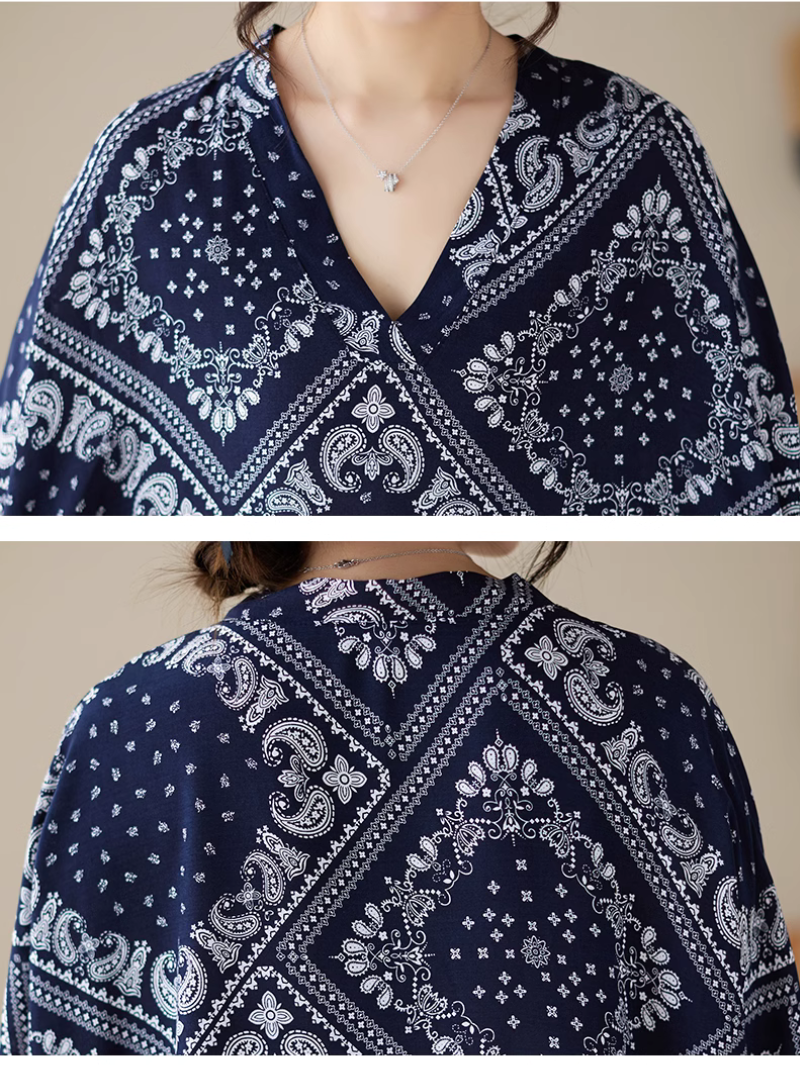 Women's Kaftan Dress. designed to add a touch of elegance to your wardrobe. Made from a comfortable blend of cotton linen. this dress offers a breathable and lightweight feel. The dress features stylish bat sleeves and a flattering V-neck collar. ensuring a chic and sophisticated look. Available in one size. the dress measures 133cm in length with a bust circumference of 158cm. providing a relaxed and comfortable fit. Embrace effortless style and versatility with this timeless kaftan dress. perfect for various occasions and a must-have addition to your collection.