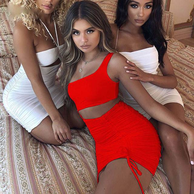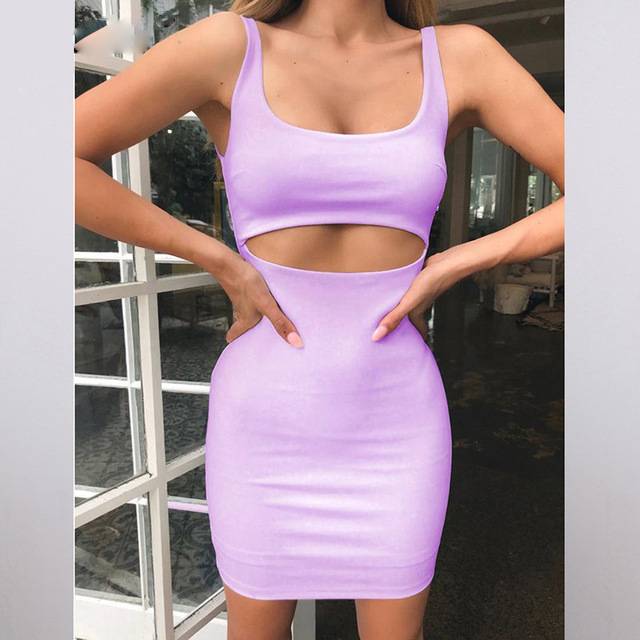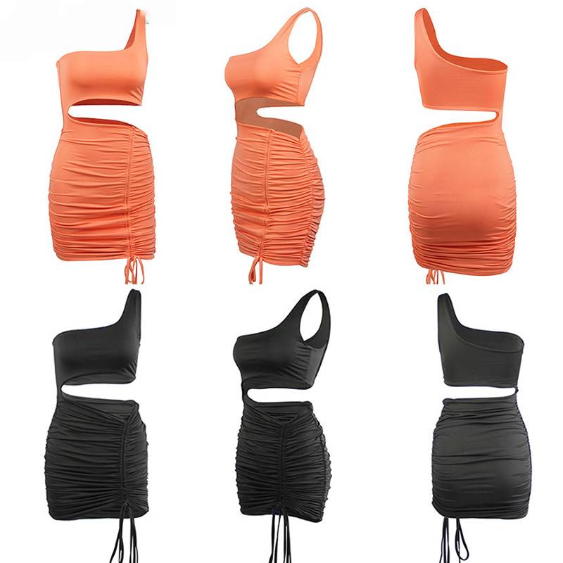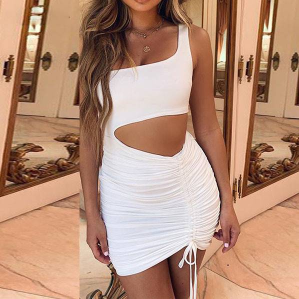 Hollow Out Sleeveless One Shoulder Bandage Women Bodycon Mini Dress