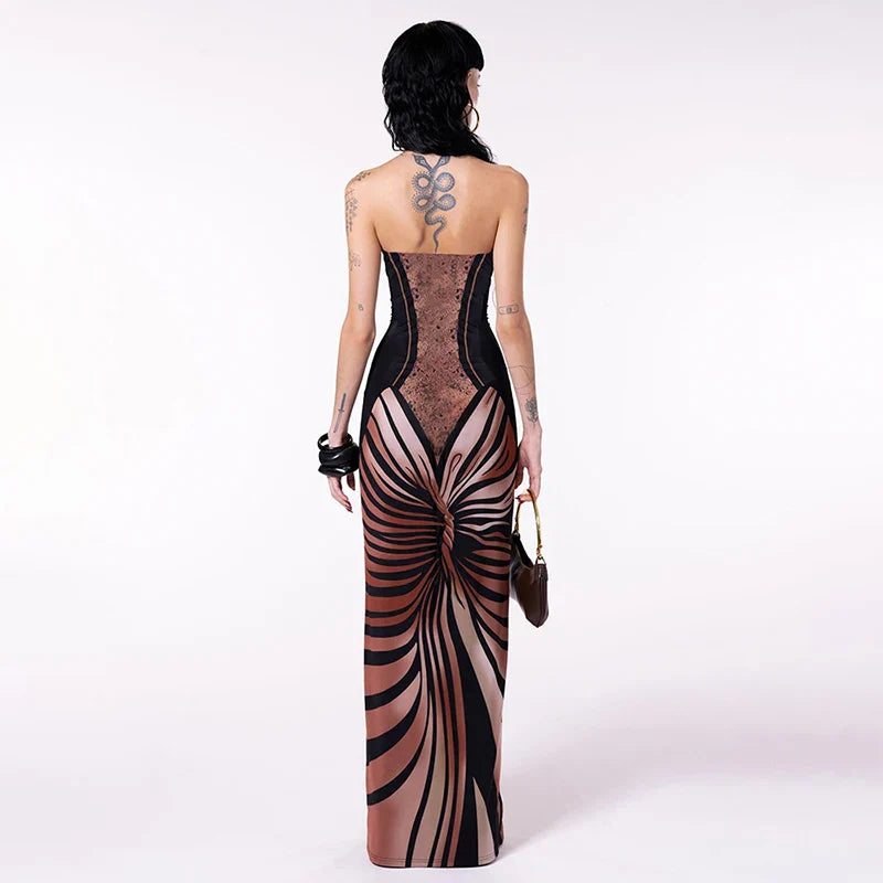 This strapless dress exudes confidence, with a slim and sheath silhouette that accentuates your curves. Made from a comfortable polyester and spandex blend, it features a stylish geometric pattern and a seductive slitted design. Perfect for a night out or a special date, you'll definitely make a statement in this maxi dress.